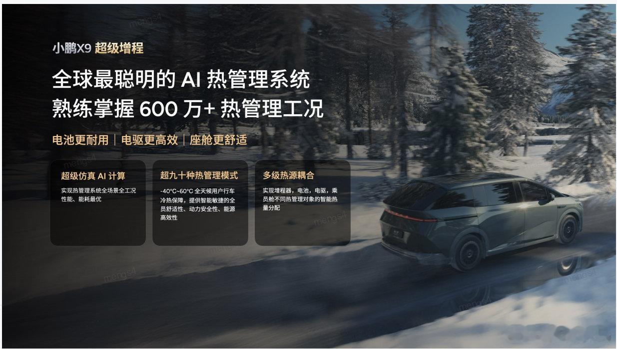 小鹏X9超级增程,在黑河实测极寒座舱升温,仅10分钟升温36°C,-15°冰窖瞬变21°温室!全球首创11热源AI热管理系统,实现快速升温与柔和送风,带来“上车即暖”的舒适体验;行业首个AI热管理大脑,预判场景并智能调节,实现“升温即最优”。暖得更快、更均匀,小鹏X9超级增程妥帖呵护每一位家人。小鹏X9极寒10分钟升温36度冰窖变温室小鹏X9超级增程冰雪体验日