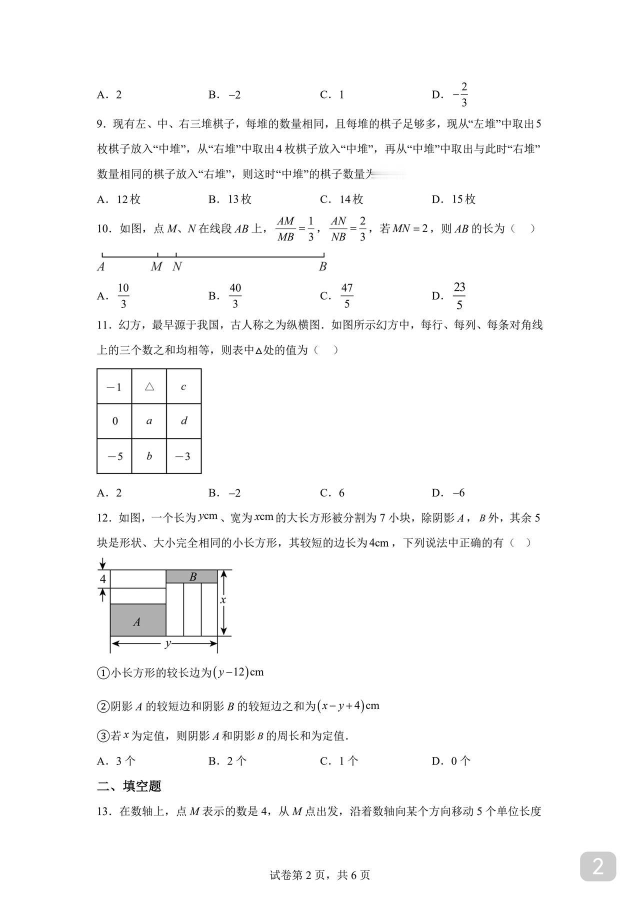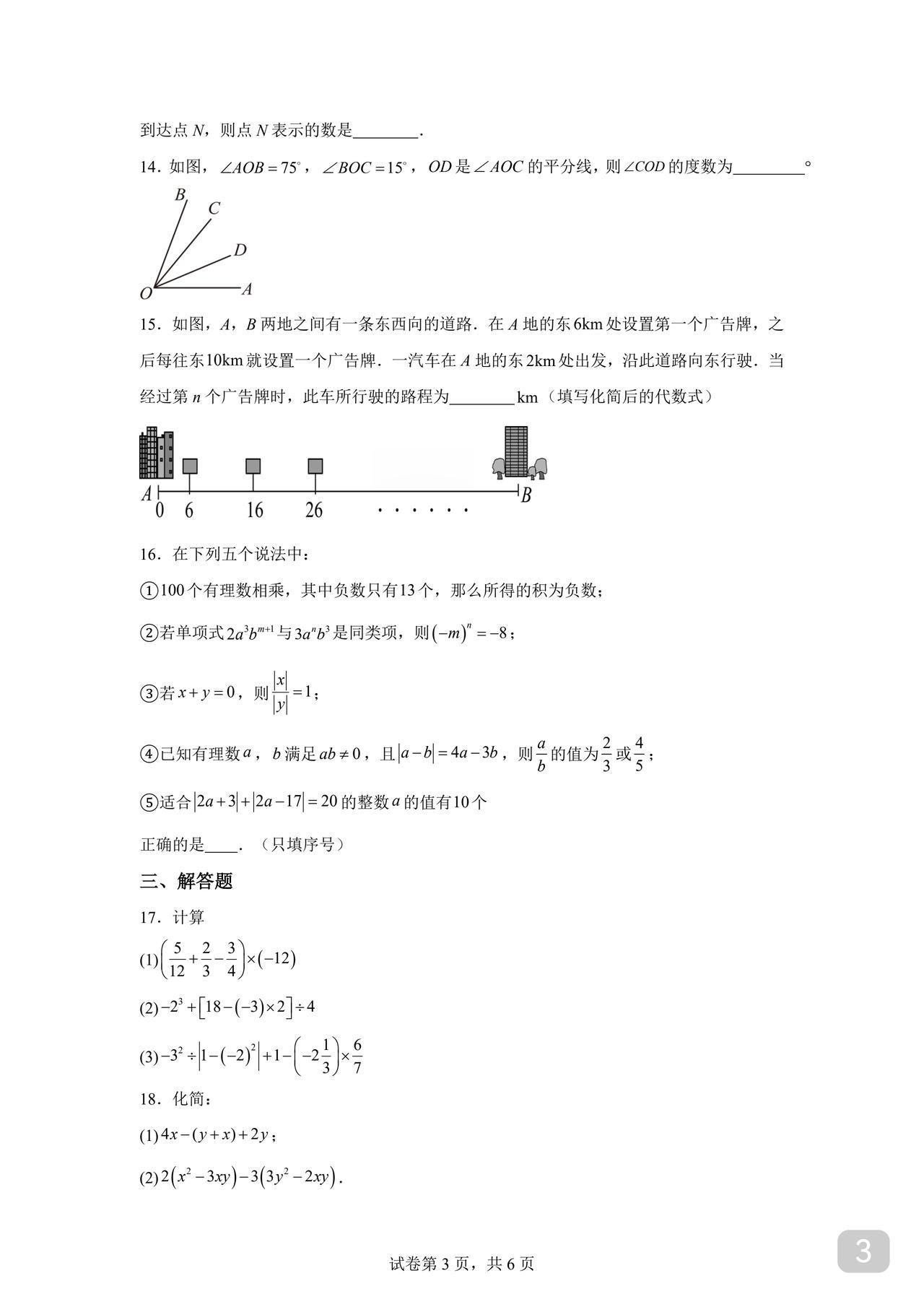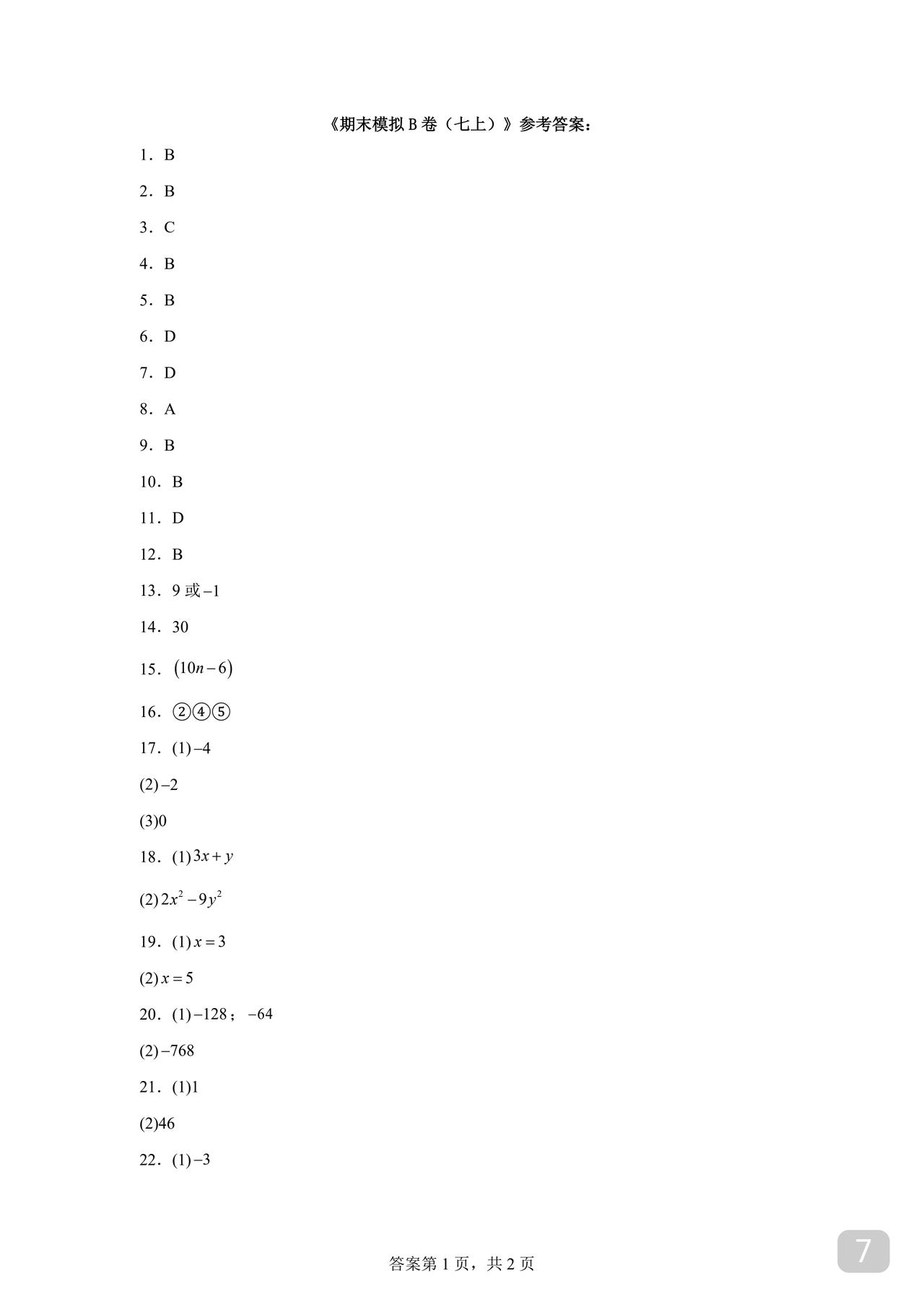 初一数学期末试卷 基础卷 知识点考查全面 值得一练 建议压缩练习时间 一小时内完成