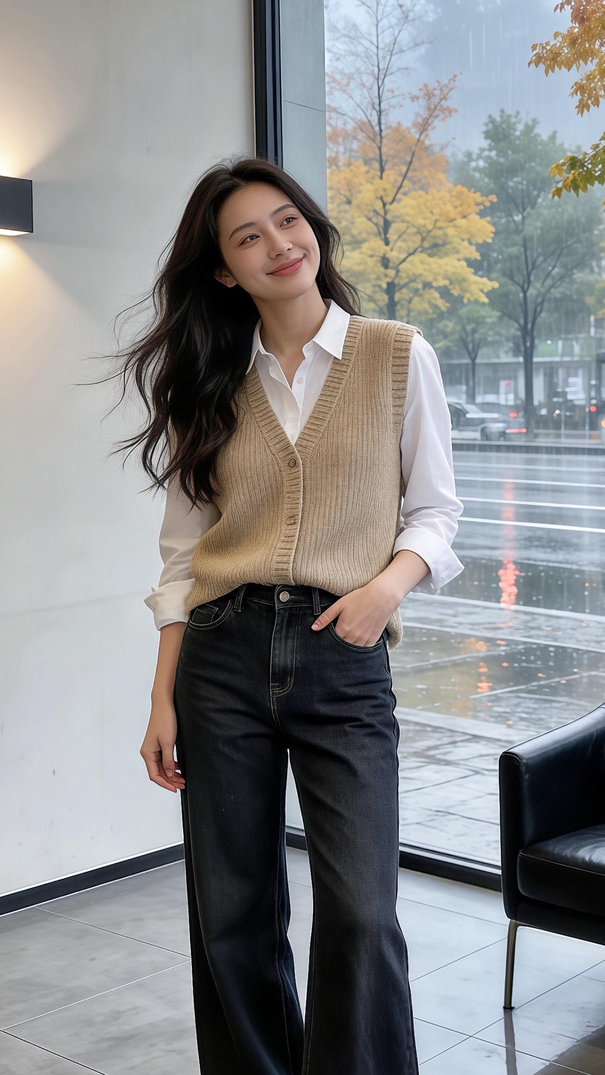 白衬衫简直就是基础百搭单品,与马甲叠穿的秋冬松弛感拉满啦~