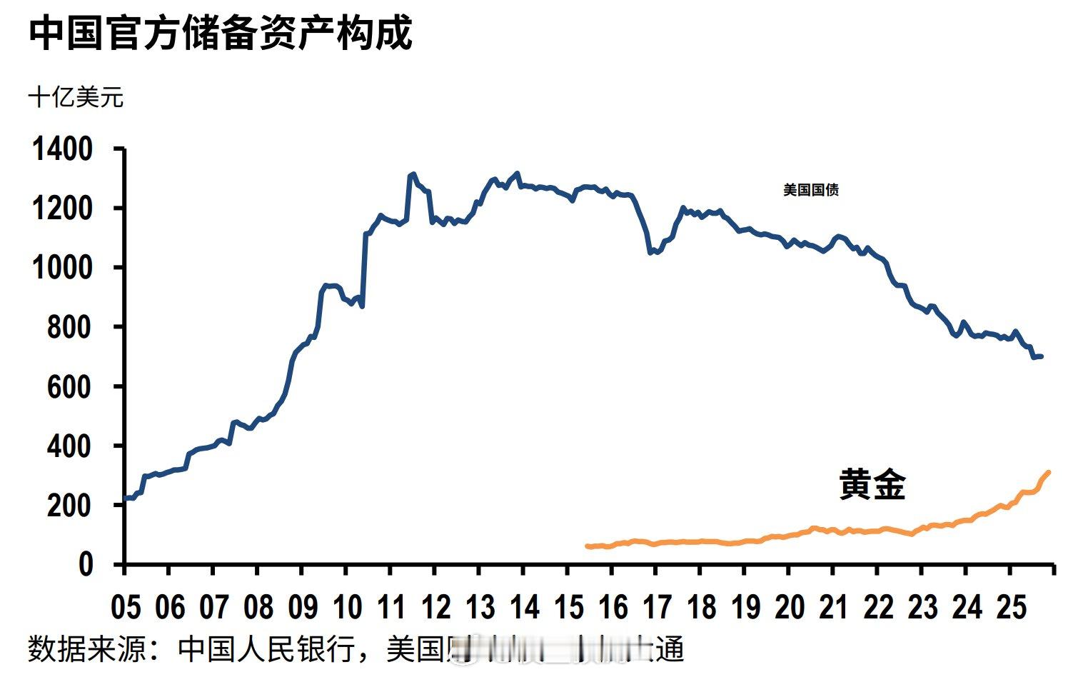 黄金的储备是不是会超过美债?