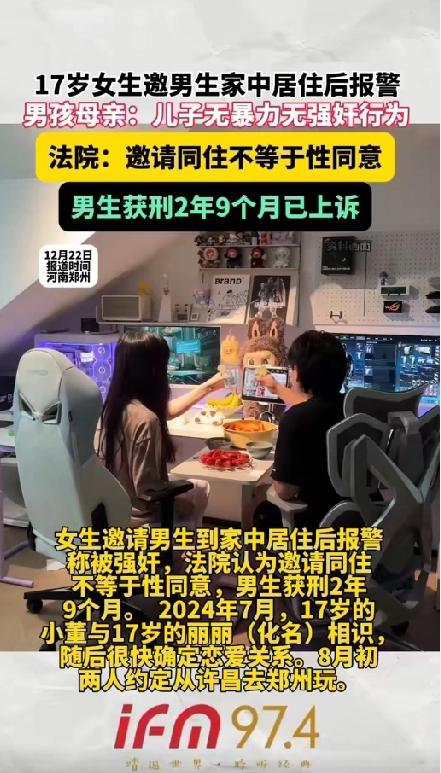 17岁男生受邀住女友家后,因强奸获刑,是女方反口还是男方越界! 2024年7月,小董与丽丽相识并迅速确定了恋爱关系。8月初,两人相约前往郑州游玩,期间丽丽邀请小董到自己家中居住。这本是一段充满甜蜜与期待的旅程,却在一夜之间急转直下。丽丽称与小董商量好分房睡,但小董却留在她的房间并对其实施了性侵,随后报警将小董控制。然而,小董母亲却坚称儿子并未采取暴力手段,且女方在儿子被拘留后还曾发“好想你”的微信表达思念,这让案件变得更加扑朔迷离。 2025年9月28日,郑州市高新区人民法院作出一审判决,认定小董构成强奸罪。法院认为,虽然小董是应邀前往丽丽家居住,但这并不等同于女方同意性行为。于是判处小董有期徒刑2年9个月。对此小董已提出上诉。 这起案件告诉我们即使是再亲密的关系或是情境暧昧,发生性关系时都需要双方同意,尊重他人的意愿很重要!同时,法律在保护受害者权益的同时,也应当确保司法公正,避免冤假错案的发生。因为每一个判决都关系到一个人的命运,必须慎之又慎。目前案件已进入二审,最终结果需待法院进一步审查证据与事实。