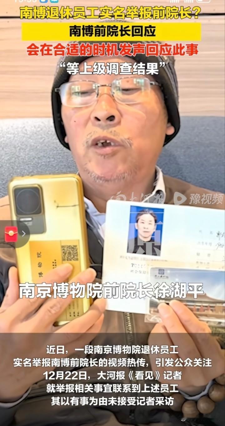 徐湖平遭受双面夹击没人敢兜底了。南博退休员工再次实名举报南博前院长徐湖平,徐湖平称会在合适时机发声。缓兵之计也无用了。 2008年,南博典藏部员工郭典礼等42人联名举报院长徐湖平,以鉴定为赝品,将文物转至自己主管的省文物总店,再转手卖给儿子,商人,文物贩子,大量盗窃走私故宫南迁文物。以文物贿赂省反贪局长韩建林,检察院长等逃避法律责任,致举报腐败材料刊登在新华社内参,案件却石沉大海。 就在庞家因捐赠字画在南博流失的纠纷成呈胶着状态时,12月21日,时隔17年,郭礼典再次站了出来,拿出当年的联名举报材料,要将徐湖平的罪行大白于天下,希望公安立案侦查,将其绳之以法,追回文物。 面对自己曾经的手下带着有名有姓,有根有据的证据,徐湖平回应,会在合适的时机发声,等上级调查结果。 他以为又像以前一样拿工作压举报人,将郭礼典调去看大门,郭礼典也年事已高,没什么可怕的,此生能把这些腐败份子挖出来,也是大功大德之人。 曾经贿赂的那些人也早已下台,自身难保了,树倒猕猴散,他还以为可以动用关系来摆平,让时间来冲淡,最后轻描淡写的发声完事。 现在如果将他及家人的通话记录摸清,那都是一串与文物流失有关的人,一摸一个准。 郭礼典说得有鼻子有眼,正好与庞家捐赠字画流失互相佐证,几乎板上钉钉了。 这个时候谁敢出来声援?就这事,漏洞百出,众多的爱好收藏的文物专家们,除了马末都老师敢指出问题,就没一个敢吱声的,不觉得蹊跷吗? 邪不压正,只要有一丝火苗能顶住压力,星星之火可以燎原,会有更多的人站出来。 庞叔令不愧是大家门庭的后人,有胆有识,为正义而坚持,郭礼典更是令人钦佩,为他们的勇敢和正义的精神点赞。