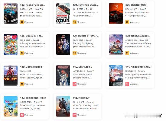 根据评分网站Metacritic的数据显示,在今年发布的游戏中,媒体评分最低的游戏是由前R星高管创立的新工作室Build a Rocket Boy所开发的首款游戏《心之眼》,仅获得了37分。糟糕的战斗系统、乏味的剧情以及无处不在的Bug使其一经发售就受到了玩家们的差评轰炸。 此外,与Switch 2同步发售的《Nintendo Switch 2秘密展》排在了倒数第10位。其争议点在于,作为一款Switch 2的“手柄说明书”游戏,它竟然需要花费将近50元进行购买,这让许多玩家感到不满。 本年度Metacritic评分后10名完整榜单: Nintendo Switch 2秘密展 RENNSPORT 大笨猫:完美呼噜合集 全职猎人:Nen x Impact 狂飙次元战机少女vs巨神史莱犬 浴血船长 Scar-Lead Salvation 救护车生活:救护员模拟器 欢迎光临!塔麻歌子开心镇 心之眼