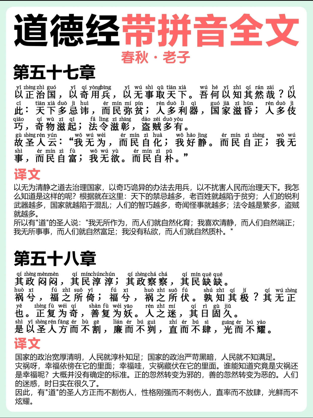 《道德经》带拼音翻译81章大全 ❗️(下)多读经典