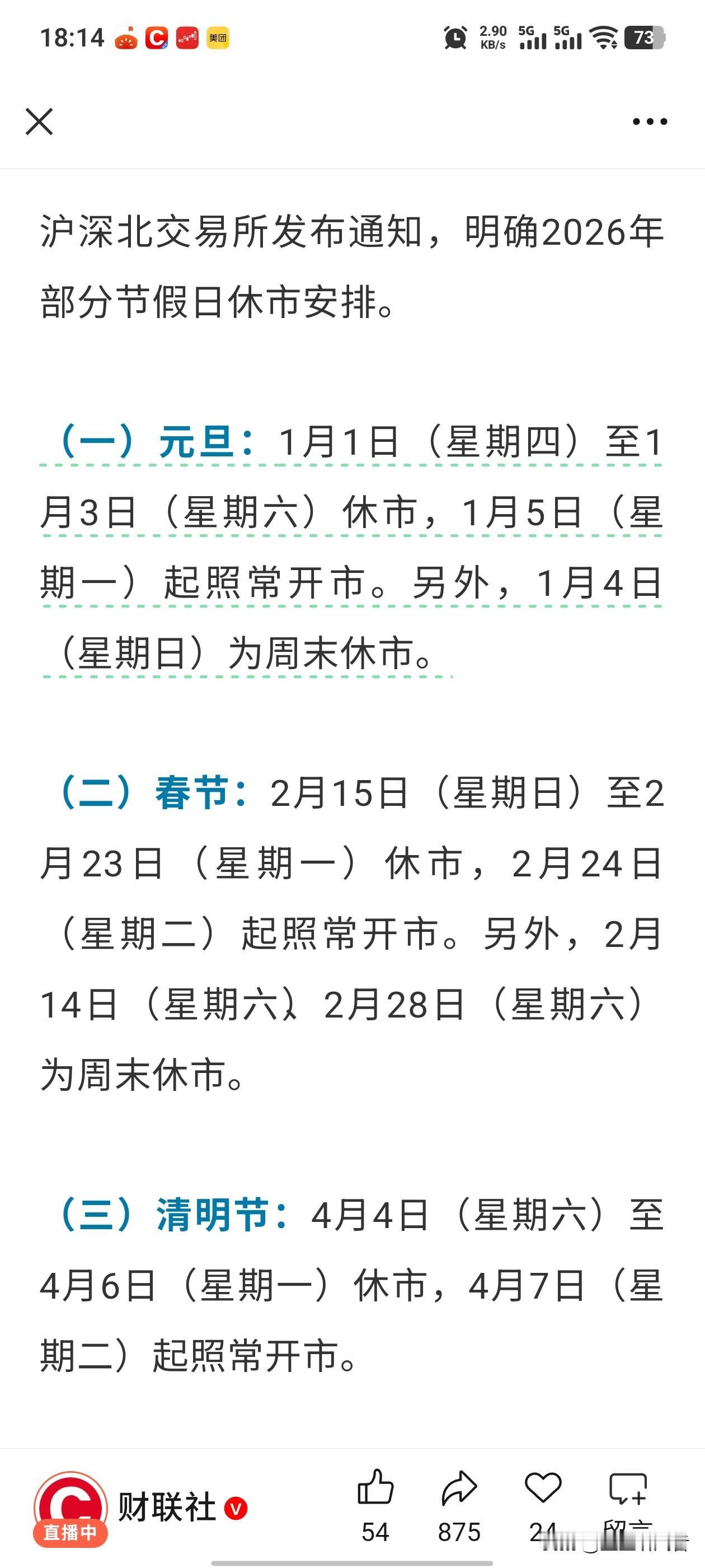 下午收盘,受不了,平价卖出zfkg.进入jlzn。异动没什么起色。今日沪深北交易所发布通知,明确2026年部分节假日休市安排。