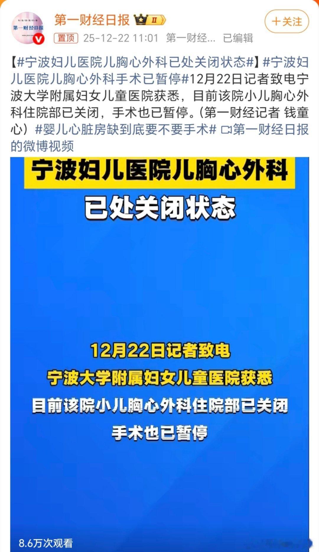 宁波妇儿医院儿胸心外科已处关闭状态这个是什么情况啊?