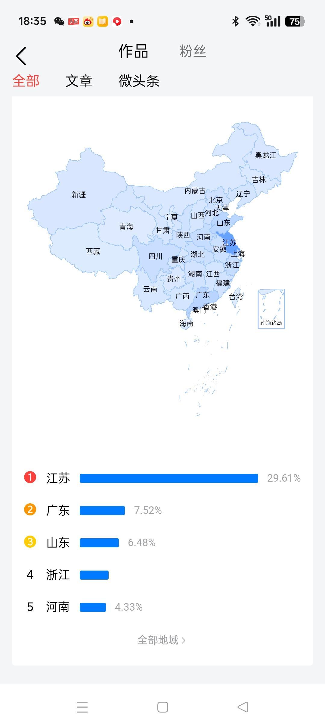 不经意的一个发现 打开本人作品阅读者地域分布图,不经意有一个发现,即阅读者前四名的省份与目前的GDP四大强省基本相同,只是江苏与广东的排序略有差异而已,而江苏阅读量居首,则预示着不久的将来,江苏GDP超越广东,已成必然!
