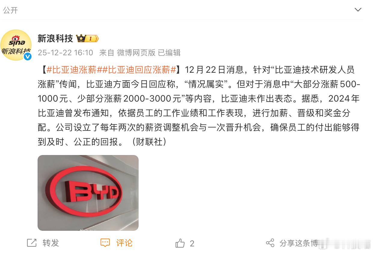 针对“比亚迪技术研发人员涨薪”传闻,比亚迪方面今日回应称,“情况属实”。要是上学