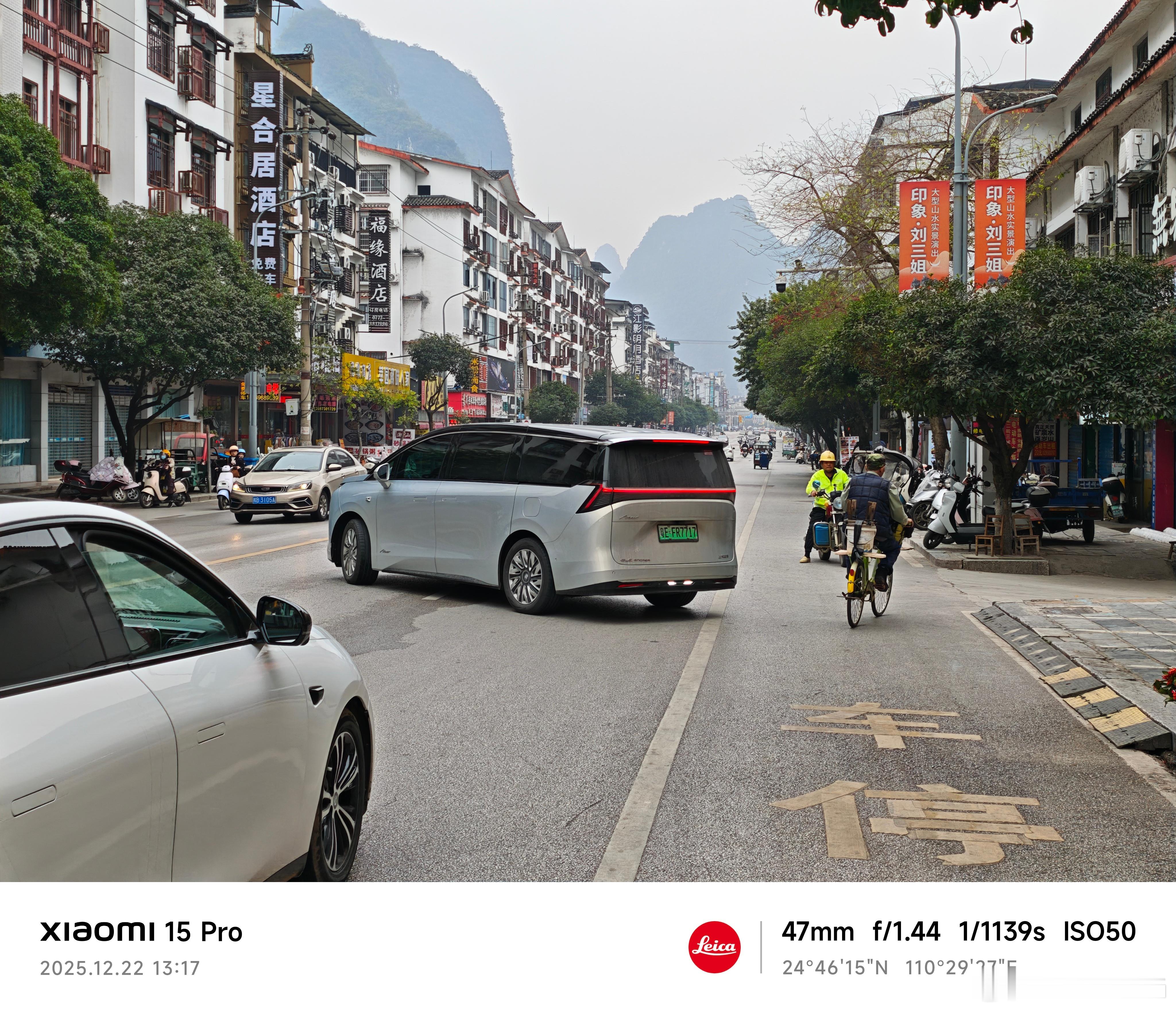 没想到路过阳朔。上次来是开别克陆尚,带全家过来度假,住在华美达。那个酒店是我比较推荐的,只是有点偏,但价格合适,不会翻车。其他的就是一些民宿了,要么贵要么翻车,比如我们上次就住了温德姆的家庭房,那就是一个公寓改的,不太喜欢。再上一次来阳朔还是我第一次买纯电车,那时候充电桩都没难得多,高速许多服务区的充电桩都还没开放。回回吃这个啤酒鱼,我觉得麻麻地,但又没别的吃食。阳朔到处都是租电动自行车的。