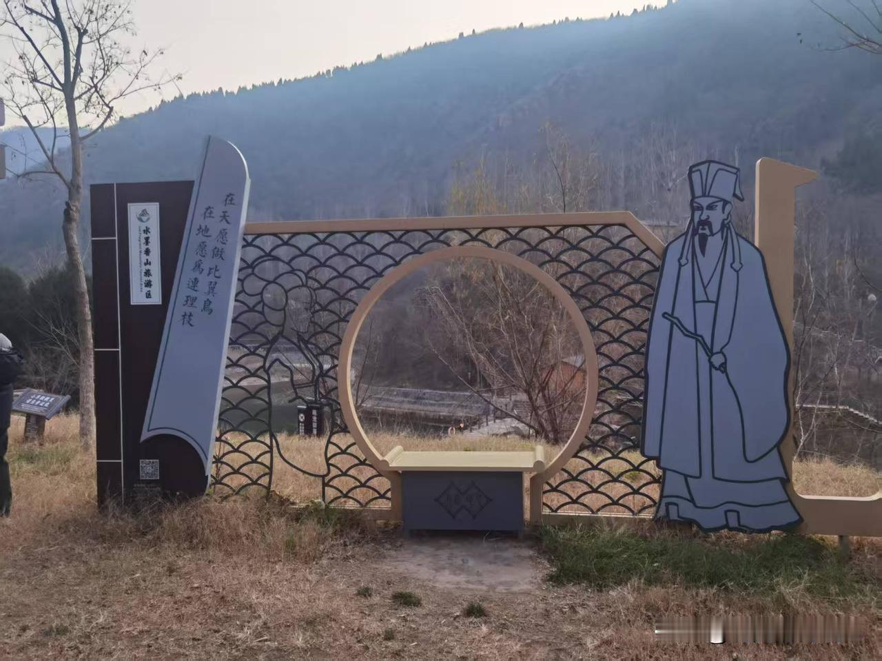 今天来到水墨香山旅游区,一眼就看到了超有氛围感的景观打卡点!立着的诗词牌上写着“在天愿做比翼鸟,在地愿为连理枝”,一下子就把古典韵味拉满了。旁边还有古风人物立绘,搭配着镂空的鱼鳞纹屏风和圆形框景,背后是连绵的青山,随手拍都很出片。站在这里,仿佛能感受到诗词里的浪漫意境,山水与人文交融的感觉太妙了。这处设计把诗词、山水和艺术结合得特别好,逛到这儿忍不住停下来多拍了几张,真心推荐大家来感受这份独特的诗意。