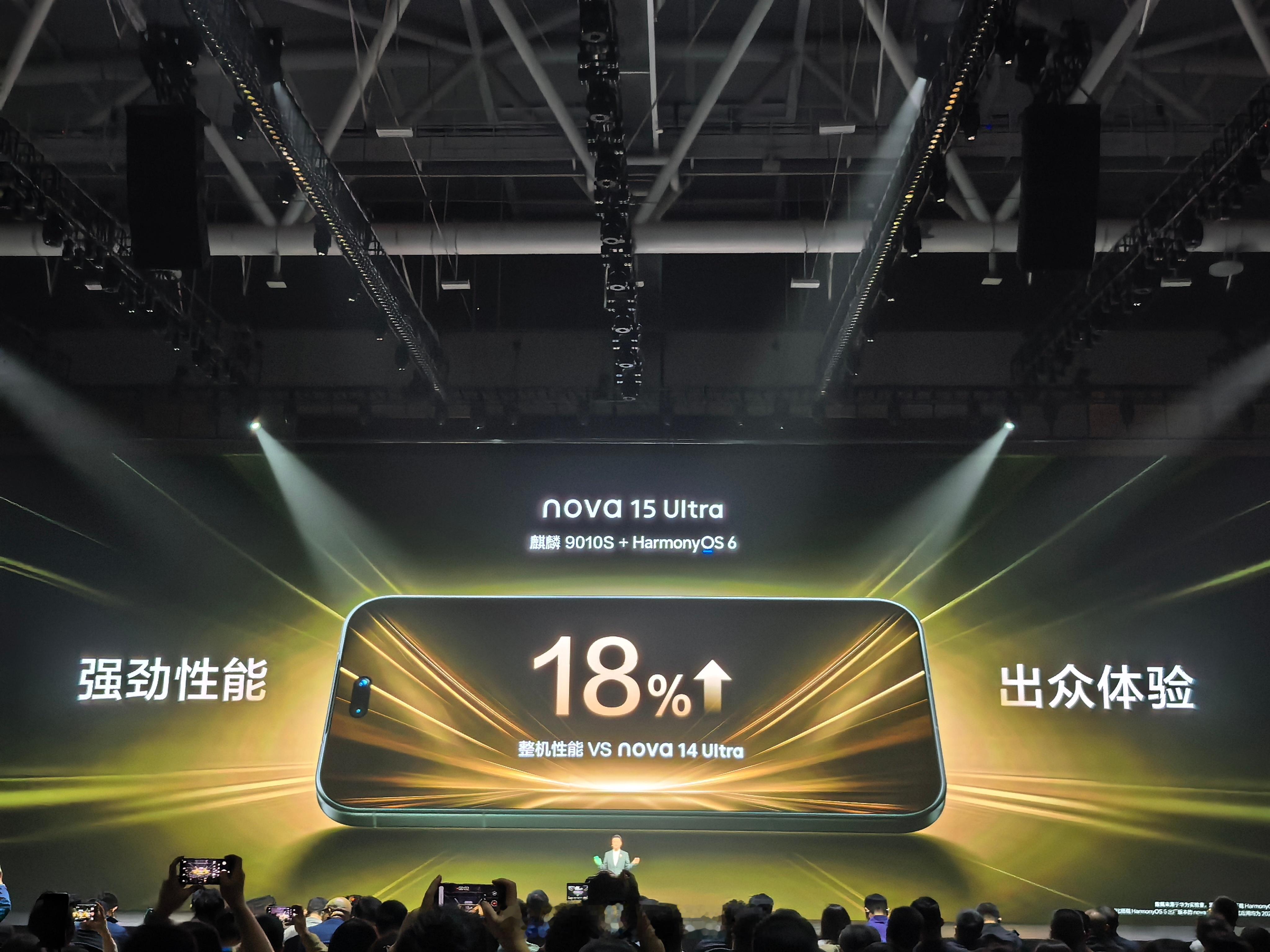 华为nova15Ultra搭载麒麟9010S+HarmonyOS 6。