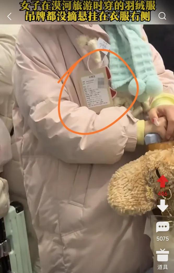 只要我不尴尬,尴尬的就是别人!黑龙江漠河,一男子旅游时注意到一名穿着粉色棉袄的女生,见对方打扮的可爱,就忍不住多看了两眼,结果走到正面,却发现她羽绒服右侧还挂着一个大大的吊牌,男子也是瞬间好感全无。网友:不知道哪个网店老板要倒霉了。 粉扑扑的羽绒服裹着人,倒也算齐整,偏那衣襟上晃着张崭新吊牌,明晃晃的,像块遮不住的疤。排队的人忍不住侧目,她倒浑不在意,照旧往前挪着步子。 旁人私下嘀咕,怕不是揣着精明心思——网上买了新衣穿来旅游,等玩够了,正好卡着七天无理由的期限退回去,白穿几天,一分钱不花。 这话听着刻薄,却也由不得人不这么想。谁家正经穿自己的新衣服,会留着吊牌招摇?除非打从一开始,就没打算把这衣服当成自己的。 有网友打趣,该给这种吊牌印上硕大二维码,扫码能举报,还能累计次数,看谁还敢钻空子。也有人直言,哪是忘摘吊牌,分明是揣着明白装糊涂,把规则当成占便宜的梯子。 这般行径,生活里倒也见怪不怪。租来似的穿几天衣服就退,用完的电器擦干净就寄回,以为占了便宜,实则丢了体面。 规则从来是兜底的底线,不是供人投机的工具。七天无理由,护的是真心购物的人,不是耍小聪明的算计。一件衣服罢了,何必让吊牌晃掉了做人的踏实?