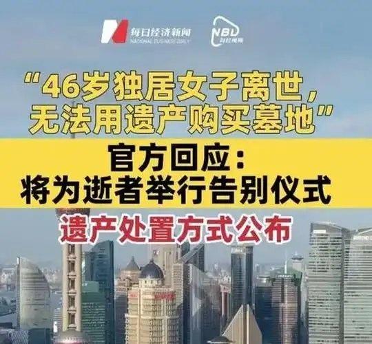 《“46岁独居女子离世,无法用遗产购买墓地”,官方回应:将为逝者举行告别仪式;遗产处置方式公布》“46岁独居女子离世,无法用遗产购买墓地”,官方回应:将为逝者举行告别仪式;遗产处置方式公布