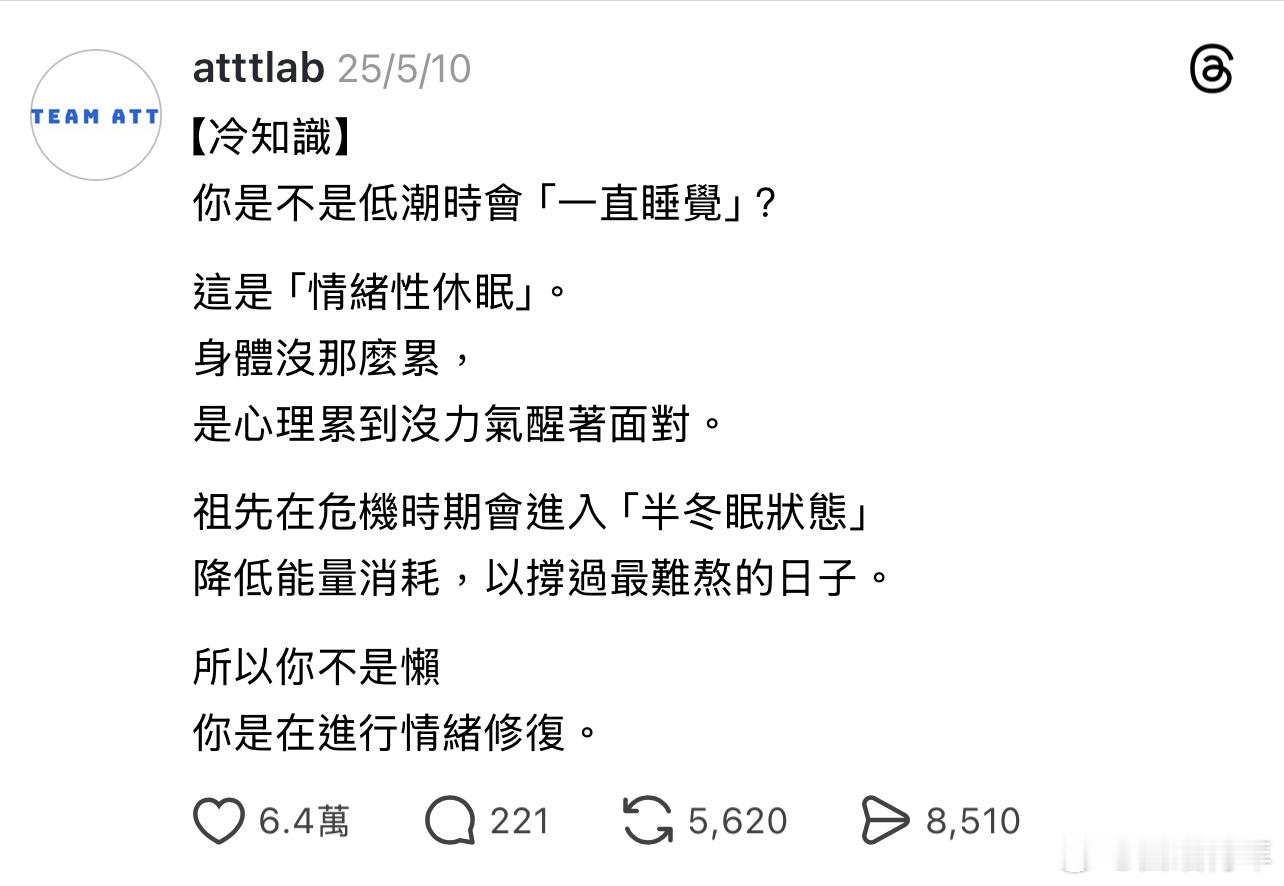 低潮的时候会很想一直睡觉。这不是懒,你是在进行情绪修复。