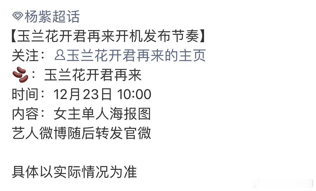 杨紫《玉兰花开君再来》明天宣女主单人海报,做她的事业粉是不是特别爽?