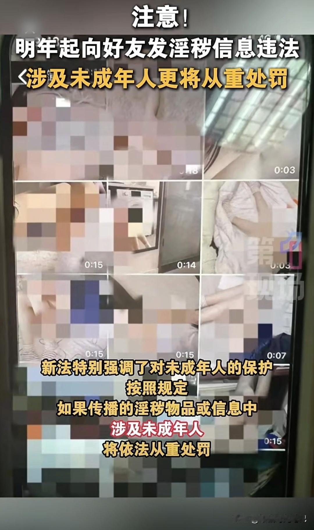 2026年1月1日起,新《治安管理处罚法》正式上岗,第80条把“私聊发黄”拎出来明砍: 无论是一对一,还是五百人大群,无论微信群、还是短信,只要对方觉得被冒犯,反手一个举报,证据坐实,十~十五日拘留+五千块罚金;就算情节轻,五日以下+一千~三千罚款也跑不。 别再说“兄弟之间开个车”没人管,法律这次把“公域”“私域”的隔墙一脚踹倒——微信、QQ、短信、彩信,统统算“信息网络”,发出去就算“传播”。 倘若,群主“装死”不管理,群里有人发黄,管理员一样是要被拎去喝茶的。 屏幕对面不是“私域”,边界感才是成年人的最高情商。好友不是荷尔蒙的垃圾桶,所以请管住指尖,比发“资源”更能体现魅力。 「图源:@第一现场」
