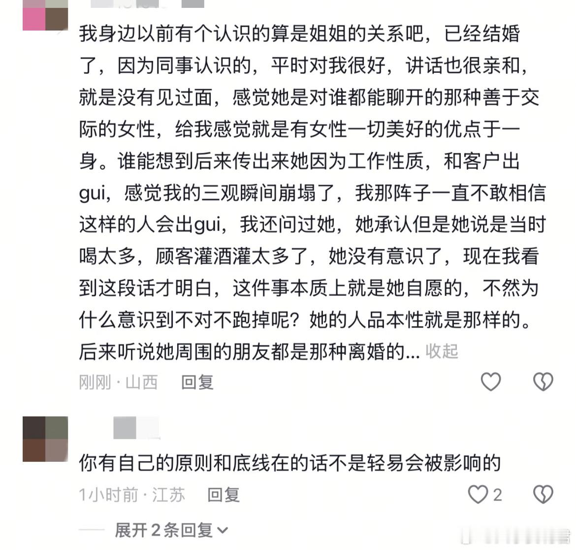 我原来的一个女同事,比较open,属于情史极混乱的,前前后后交了20几个男朋友。