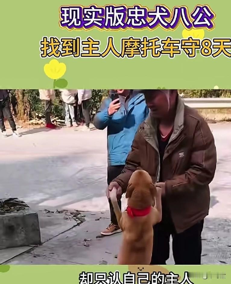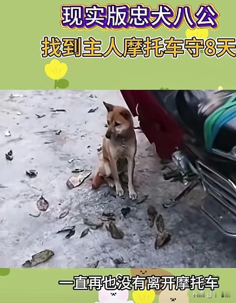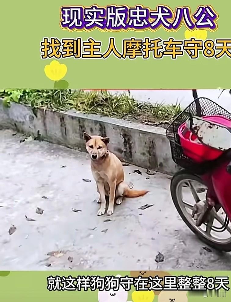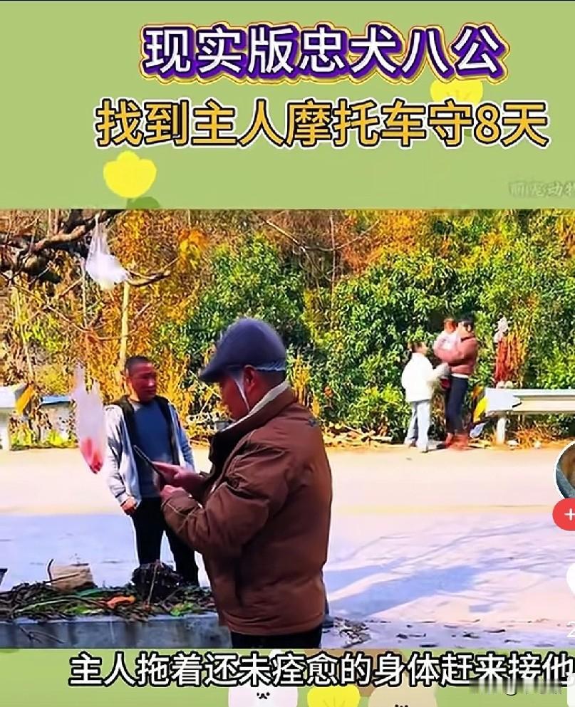 没想到中国版也有忠犬八公啊,但我们这只叫“来福”,因主人出了车祸,狗子连夜找到主人丢下的摩托车,苦守8天,不离不弃。 近日,四川绵阳平武县,狗主人下山去为狗子取食物,不慎骑车摔倒了,被人救走住院了。这只叫来福的纯中华犬等不来主人回家,愣是嗅着味道下山找到了主人的摩托车,这一守就是八天八夜啊。 附近的花店老板最先发现了它,也知道他的主人出了车祸,找来食物喂了它,还有人给它就近搭了个小窝,让它安心的守在这里。狗子好像能听懂人话,有人告诉它你的主人联系上了,过几天就来接你回家了,狗子听到以后,那几天的状态都变好了,睡得也更踏实了。 终于在12月的21日,主人也从家里得知狗子下山寻他的消息,稍微好转一些,就拖着还未痊愈的身体赶来接狗子。当主人喊出“来福”的那一刻,狗狗一下子扑到主人身边,又是蹭又是舔,那股子亲热劲儿,看得周围的人都大为感动。 这哪里是一只狗的单向等待啊,分明是和主人之间的一场双向奔赴的爱。来福用八天的坚守告诉我们,忠诚这件事,从来不分品种,只分真心。 (图片来自网络视频)