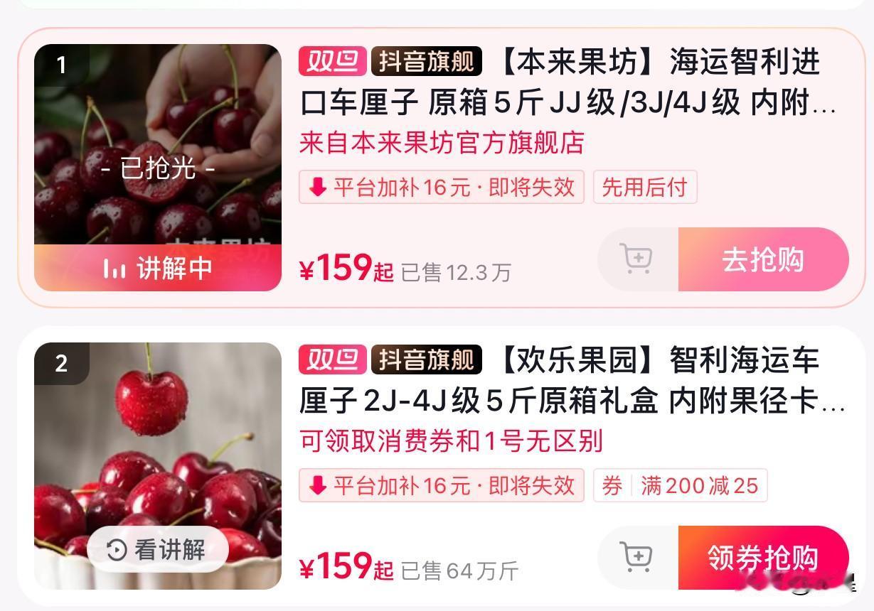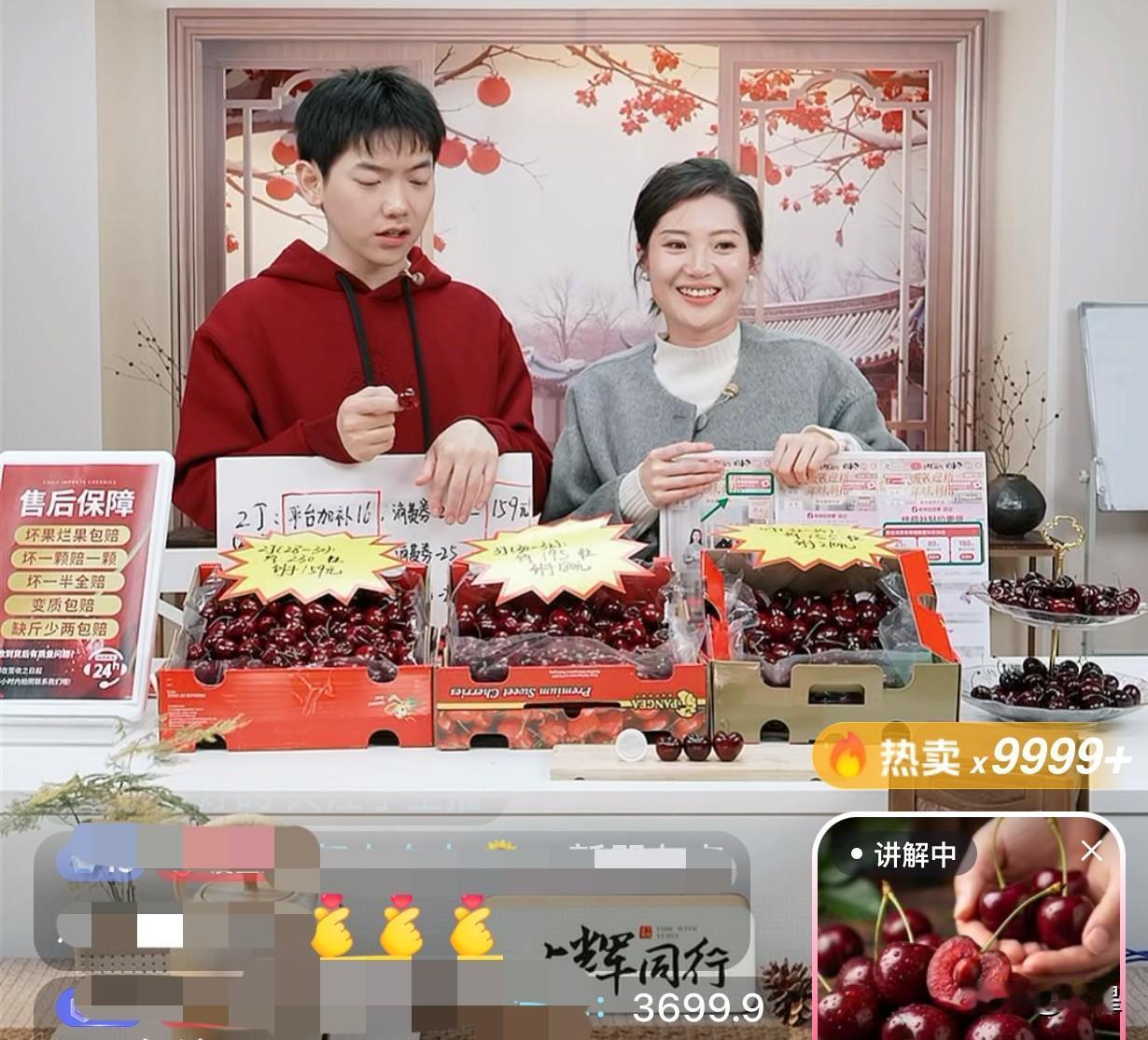 今天与辉同行直播间新增爆品 海运智利进口车厘子热卖28万单 导演跟盼盼传熙说数据的时候 不仅他俩,观众也都惊呆了 而且其中一家供应商还卖断货了 能卖这么好 一来是因为平台补贴政策 2J的车厘子158元能拿下5斤 4J的只要210元 这比去年便宜太多了 优惠力度足够大 二来是大家相信与辉同行 选品有保证,售后也做的好 如果按照最低价位158元算 仅车厘子一个单品 就卖出了4400多万 这两家车厘子的供应商 估计已经开香槟庆祝了[大笑] 另外一个好消息 与辉同行粉丝突破3700万了 观众挽留盼盼多待了半个小时 跟大家一起见证了这个时刻[耶]