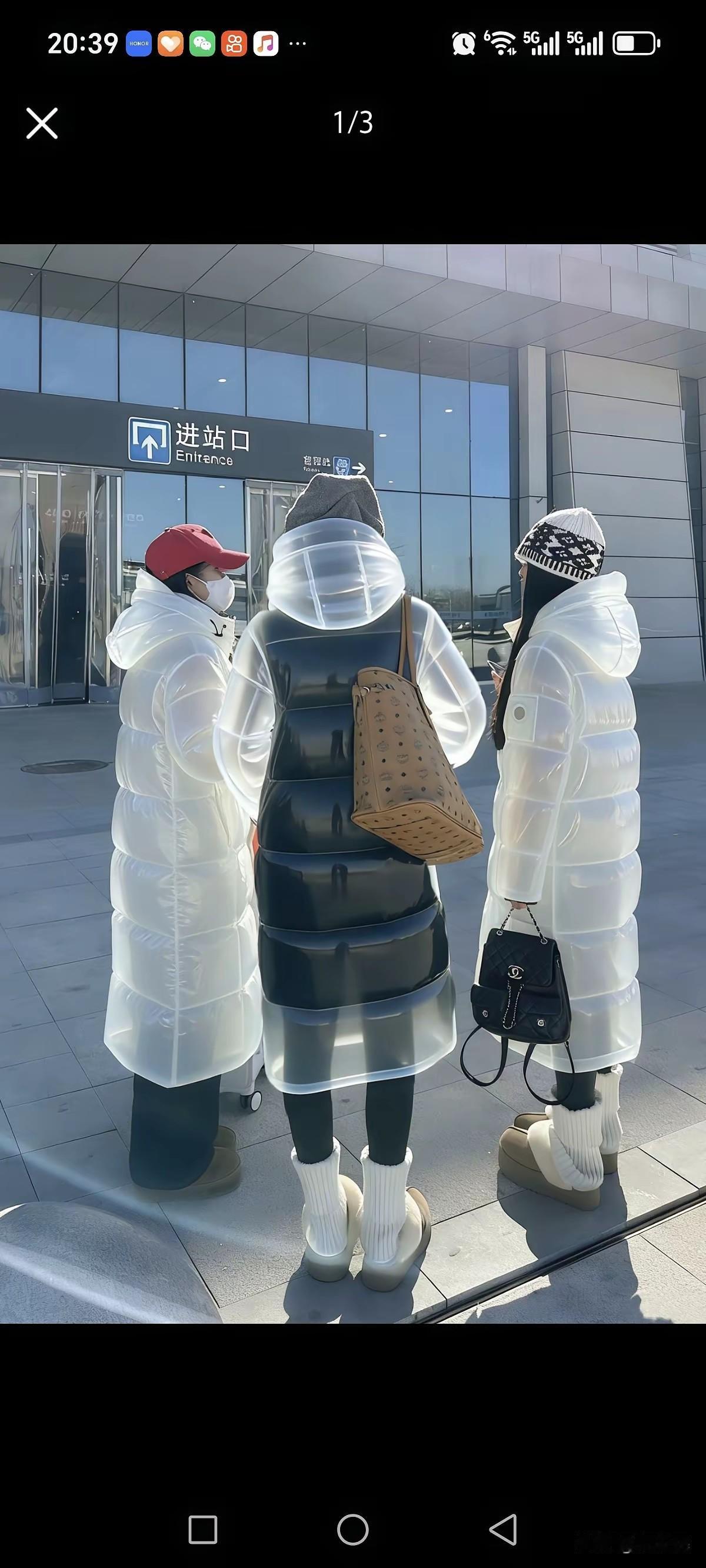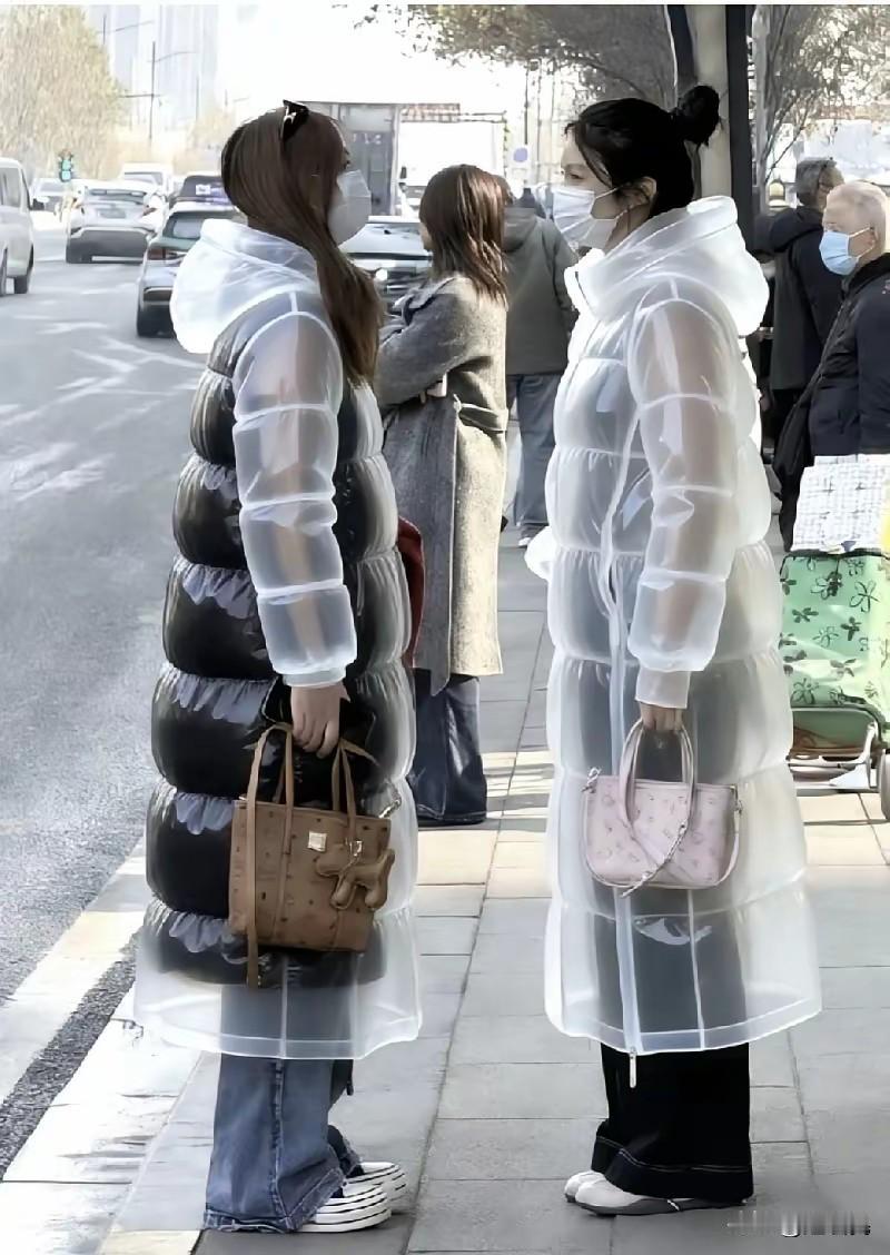 难道现在透明羽绒服,已经这么火了吗?还是AI图??? 话说这个透明衣服保暖不保暖啊?会不会很容易被扎漏气啊[允悲]#羽绒服##透明羽绒服#