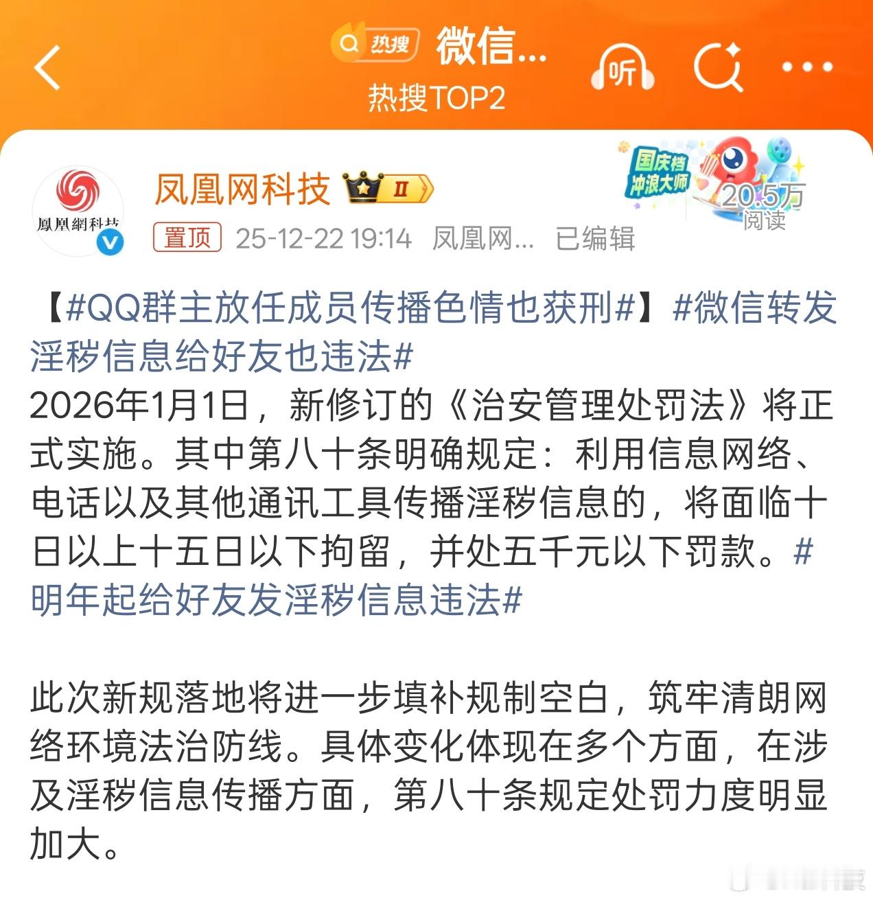 好的,都管上了明年起发淫秽信息违法 微信转发淫秽信息给好友也违法