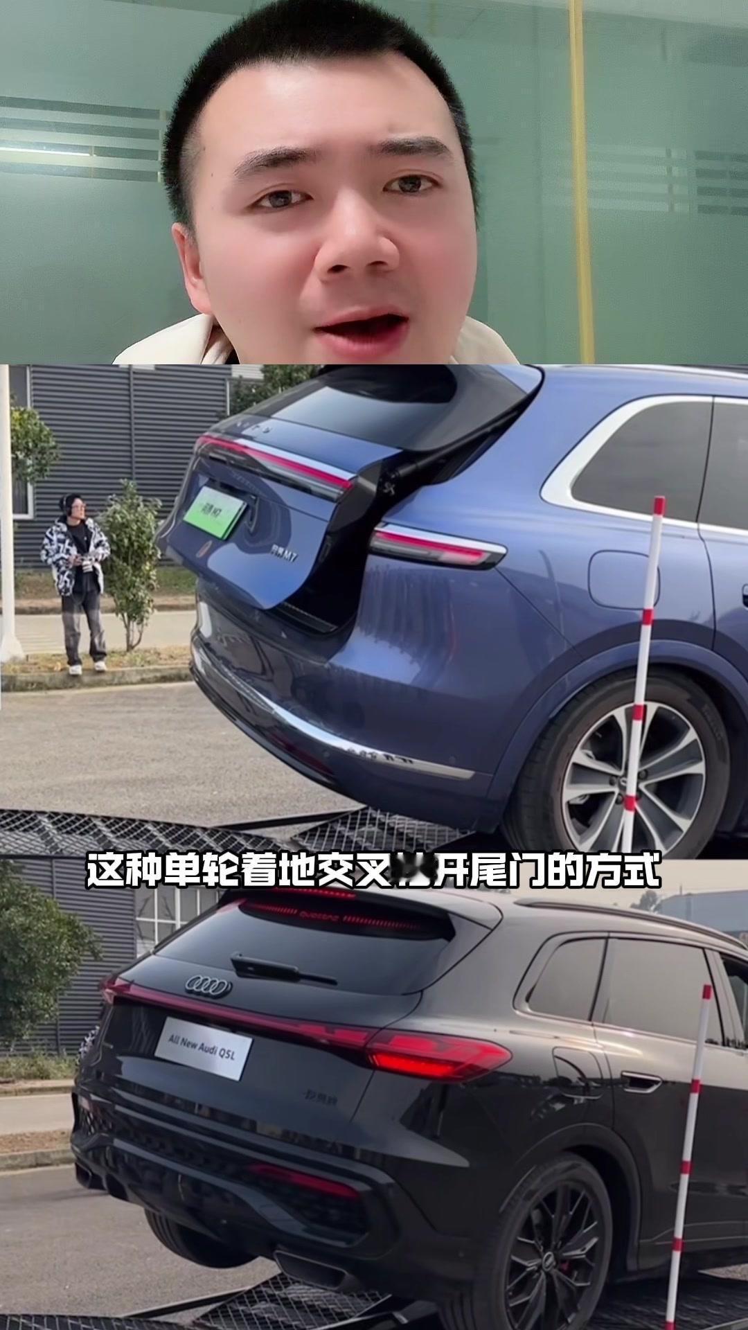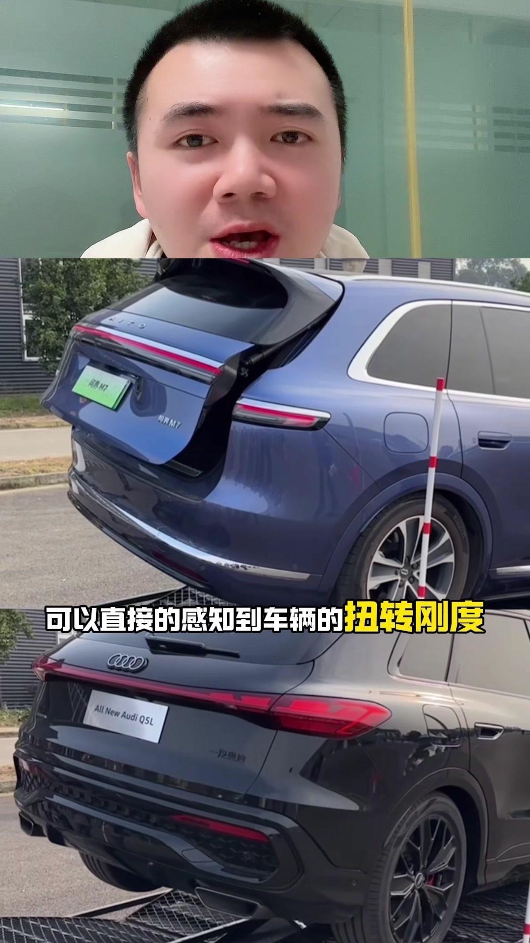 全新奥迪Q5L还没上市,电尾门在交叉轴上正常开关,闭合顺畅。反观价格更高的问界M7,后尾门却出现无法开合的情况。 这种单轮着地的交叉轴开尾门方式,能直观看出车辆扭转刚度。车身刚性好,车门尾箱才能正常开关,避免变形和异响,这可是安全、操控、静音的关键。 问界M7的电池包本身刚性就强,和车身连接后,理论上车身扭转刚度该比油车优秀才对,为何结果会这样?