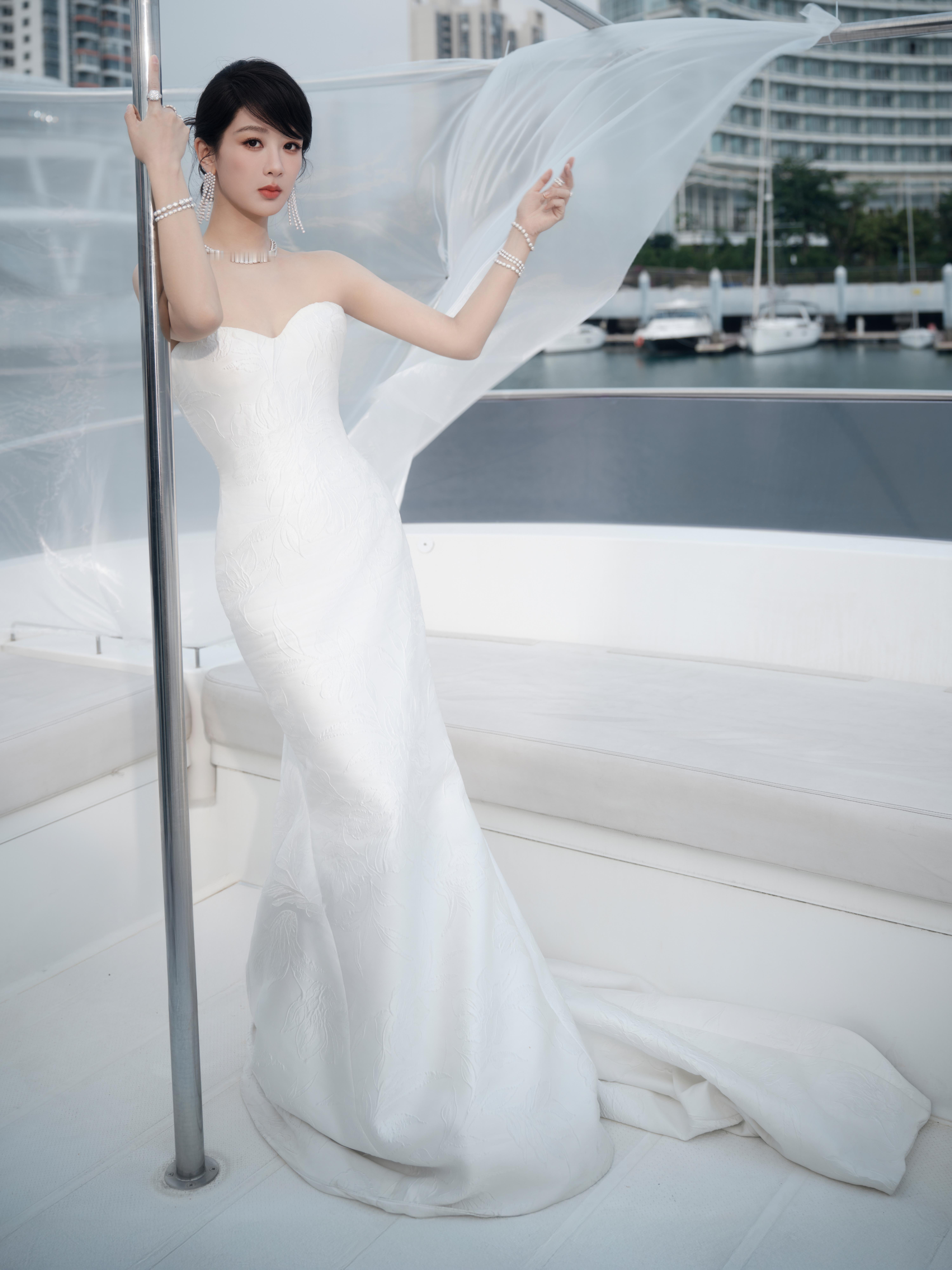 杨紫 | APM Monaco ❄️来自杨紫活动新造型 ~ 当海口夜色邂逅冬日冰雪 ,APM Monaco 全球品牌代言人杨紫亮相 apm 冬日冰雪派对 ,搭配 APM 珠宝 💎 出镜 ,演绎浪漫冰雪美学 . 镜头下以一袭纯白提花鱼尾裙搭配柔润披肩 ,将冬日的纯净与优雅融入造型。垂坠耳饰呼应冰雪的灵动线条 ,随肢体摇曳间折射细碎光芒 ,包括颈间的项链 、腕间的手链遥相呼应 ,与APM珠宝 💎 完美融合 ,在海口的暖夜中打造出独属 APM Monaco 的冬日绮梦。