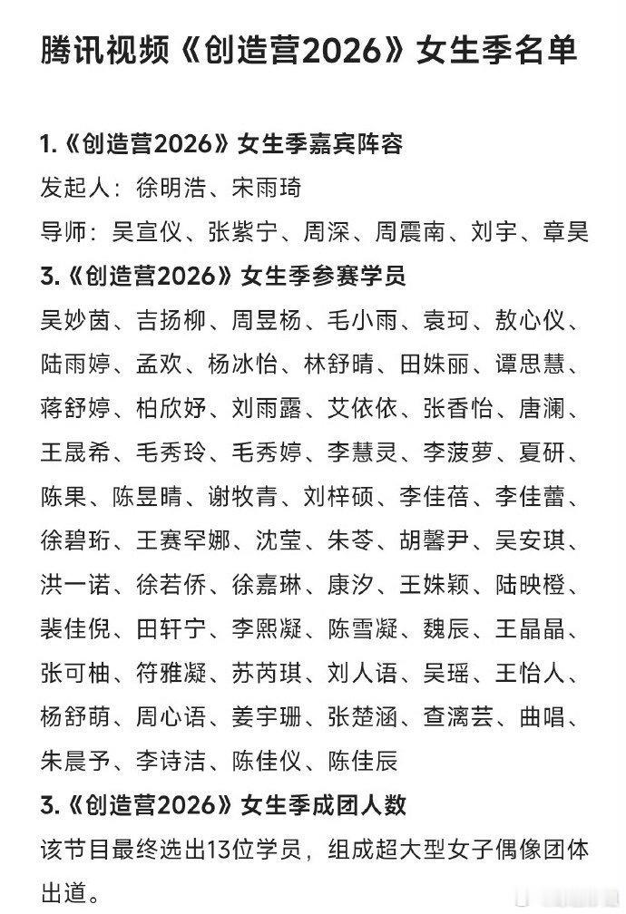 网传《创造营2026》是女生选秀,好多眼熟的名字🧐