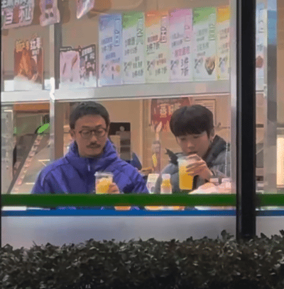 谁懂啊!这俩怪人拿着冰杯调酒碰杯,一本正经的样子超反差,果然搞笑搭子干啥都有意思