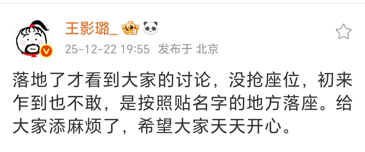影璐专门发微博说自己没抢座位,现在看丞磊会不会配合一下