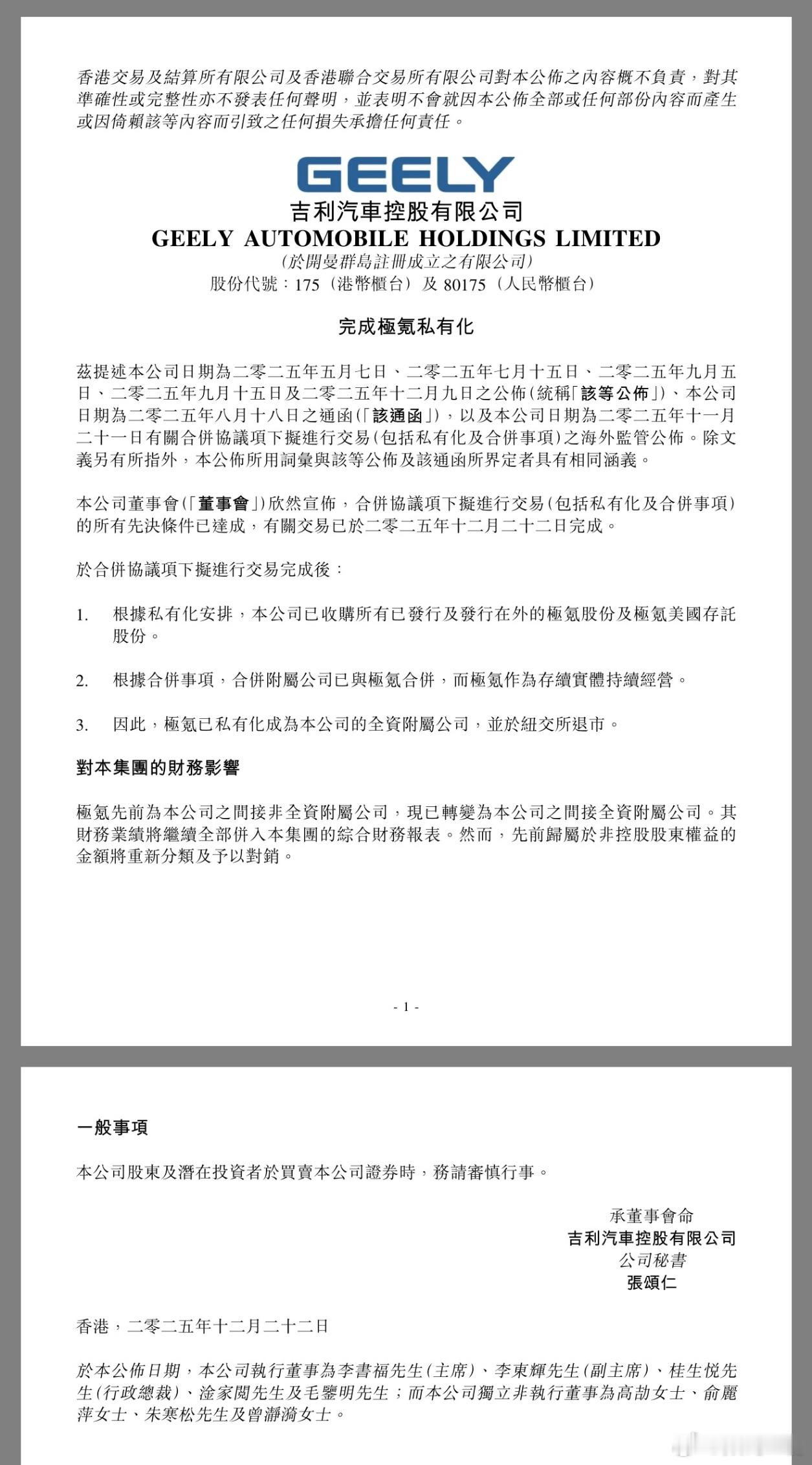 快讯:吉利汽车与极氪整合完成,极氪智能科技控股有限公司已成为吉利汽车的全资附属公司,并于纽交所退市。回归“一个吉利”,且看后续会带来哪些实质变化。