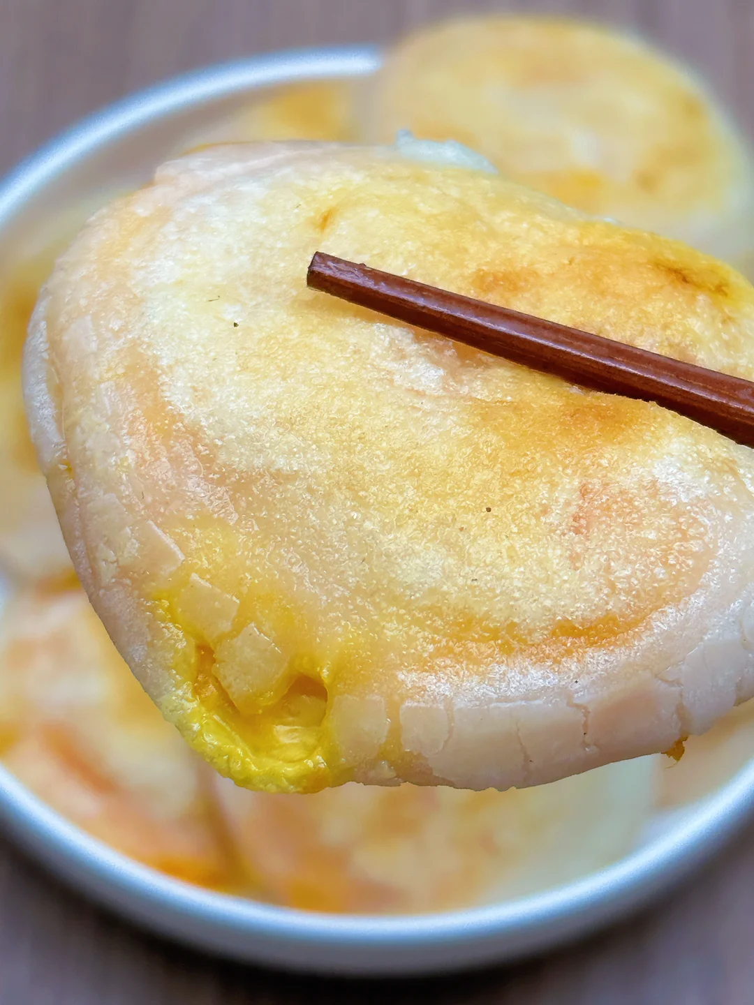 4⃣️锅中刷油放入小饼,小火煎至两面金黄,熟透即可