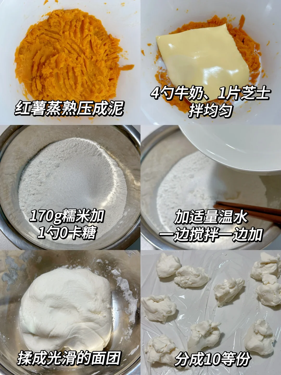 🥗食材:红薯、糯米粉、温水,牛奶、0卡糖