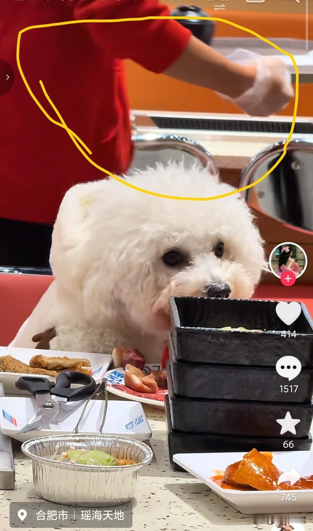 又一个让狗上桌吃饭的,真的是把狗当家人了,不过这顿饭有点贵呀。 餐馆培训不到位呀,旁边有个穿红色衣服的服务员在收盘子,看到狗上桌不管,店家要负次要责任。 这届网友的速度蛮快的,已经通过盘子上面的logo找到了该店,商家第二天起来看评论区天都塌了。 律师都不用请了,已经有模板了,这两天就餐的顾客退一赔一,餐具损毁,追究责任。