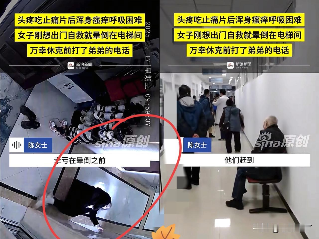“悲剧还是发生了!” 浙江绍兴,一女子起床后头疼难忍,坚持送完孩子后她服下止痛药缓解头痛,谁知引发严重过敏,皮肤瘙痒、喘不上气! 强撑着出门自救却在电梯口晕倒,幸好最后一刻拨通弟弟电话才捡回一命! 千万别把“自行服药”当成小事!很多人头疼脑热就随手找药吃,既不看说明书也不咨询医生,觉得小毛病没必要兴师动众! 但陈女士的经历就是一记警钟,哪怕是第一次吃的常用药,也可能隐藏过敏风险,这种盲目用药的习惯真的会害了自己! 用药安全无小事,比起凭经验吃药,提前看成分说明、不确定就咨询医生才是对自己负责!
