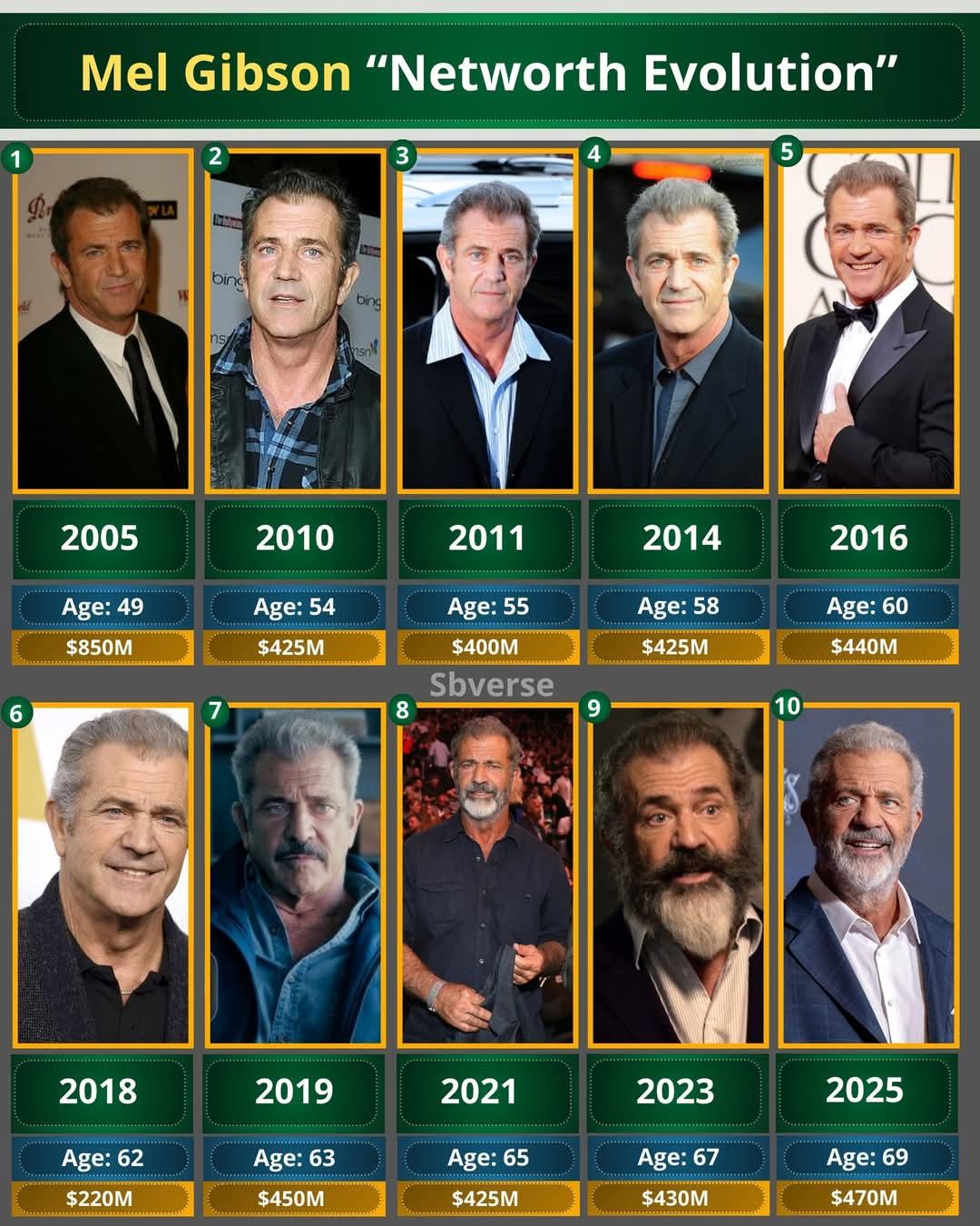 在过去的十年间,好莱坞演员梅尔·吉布森的净资产一直保持在相当可观的水平,这反映出他在好莱坞的长期职业生涯以及在幕后工作的成就。大约在2015年左右,他的财富估计约为4.25亿美元,这得益于他在《致命武器》和《勇敢的心》等大片中的出色表现,以及执导《耶稣受难记》和《阿帕罗多》等热门影片。除了他的表演和导演收入,吉布森还通过制片、发行交易和房地产投资获得了额外收益。 到2020年代初,他的净资产继续以适度的速度增长,到2025年达到了约4.5亿。尽管近年来他在镜头前的活动有所减少,但他持续的版税收入、制作中的署名以及战略性投资让他的财富保持强劲。梅尔·吉布森在财务上的发展轨迹,展示了标志性的好莱坞角色与精明商业管理相结合所带来的持久价值。 梅尔·吉布森 净资产演变 好莱坞传奇 《勇敢的心》 《致命武器》 《耶稣受难记》