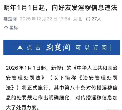 明年起发淫秽信息违法 夫妻情侣之间也不能吗?私人私聊也不行了?专家该管的不管,整天管这种屁事