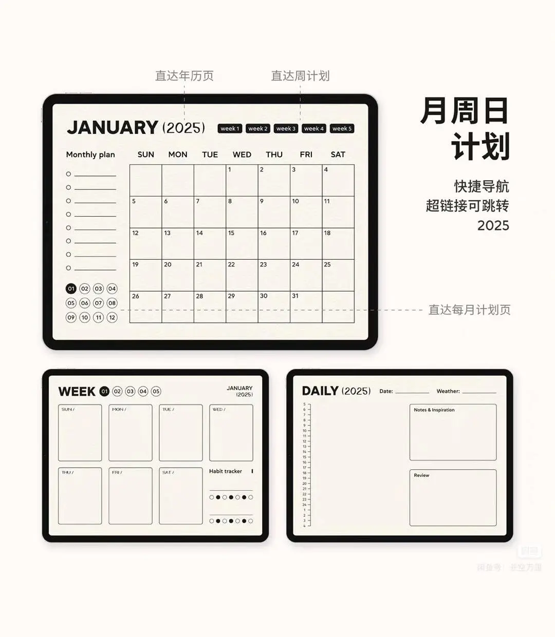 2025电子手帐全年计划本|超链接|ipad模板