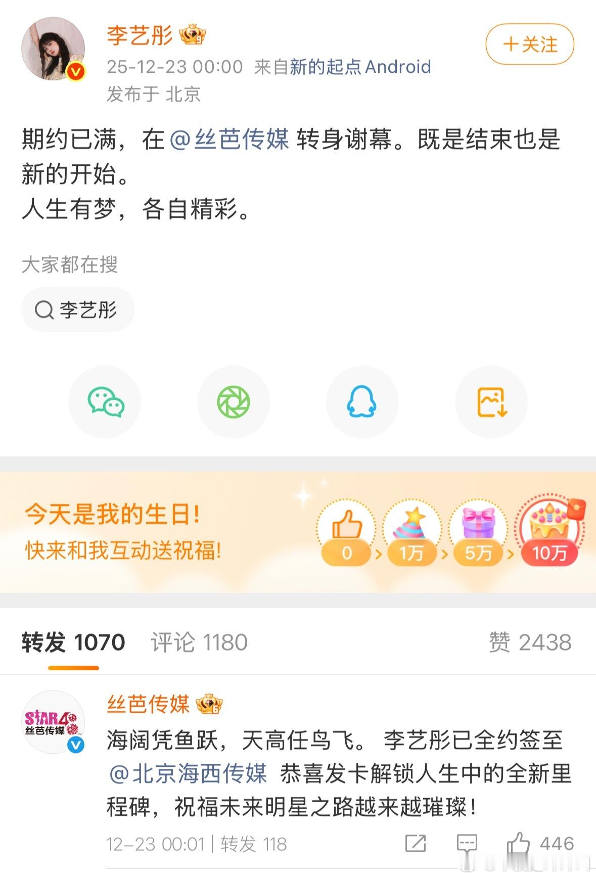 李艺彤签约海西李艺彤与丝芭解约12月23日,官宣与丝芭解约:“期约已满,在转身