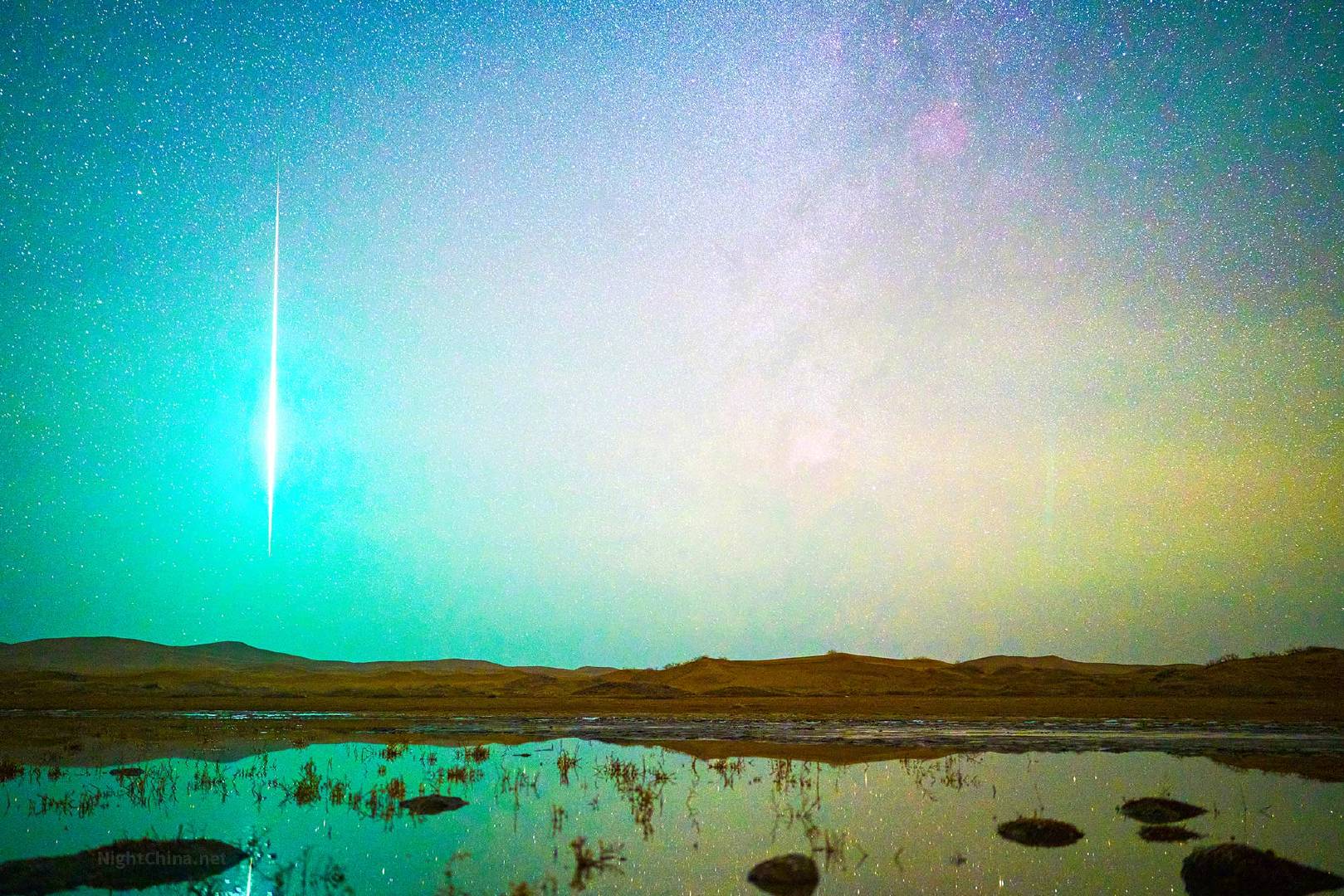 当青蓝色的夜空缀满碎星,荒原的风还在低语,一道利刃般的光突然刺破寂静。双子座的流星,带着银白色的尾焰坠向水面。那一瞬,天上的星与水里的影,在戈壁的荒凉中完成了一次绝美的相拥。摄影师:大猩猩,2025年12月15日摄于 内蒙古 阿拉善盟阿拉善左旗。索尼A7R3(改机) + 索尼35 1.4 GM,ISO 6400,f/1.4,曝光10秒。关注Steed的星空 ,每日推送星空佳作。更多图片请见 夜空中国 :NightChina.net