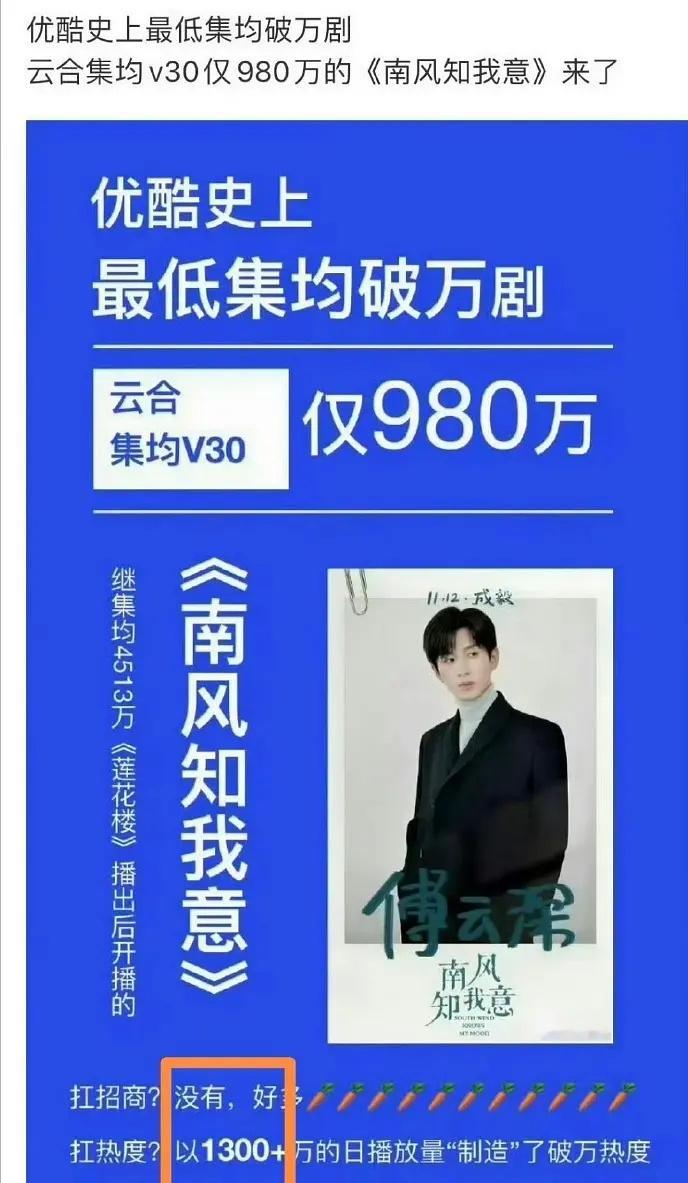 恭喜成毅迎来第二部集均1000破万剧 第一部是集均980万的南风知我意