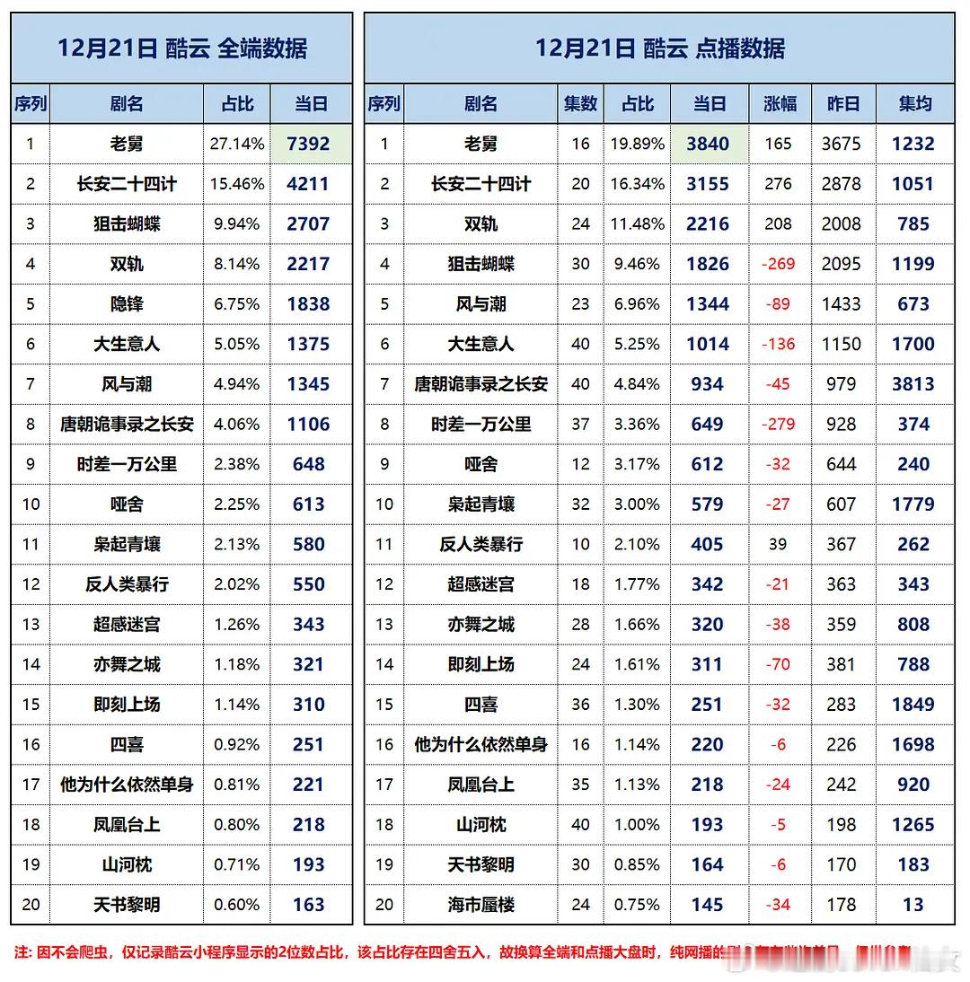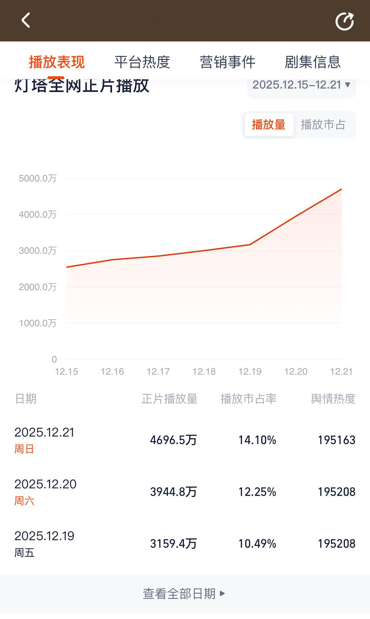 灯塔4697酷云单日3155,全网大发酵。酷云还是相对合理的,你们那部剧云合直接比酷云低好几百,好夸张。感叹一句,有的剧不愧云合数据合作啊,唯一一部云合直接比酷云还高好多呢,云合你看了脸不红吗。请大声念“云合毫无公信力的三无平台”长安二十四计云合