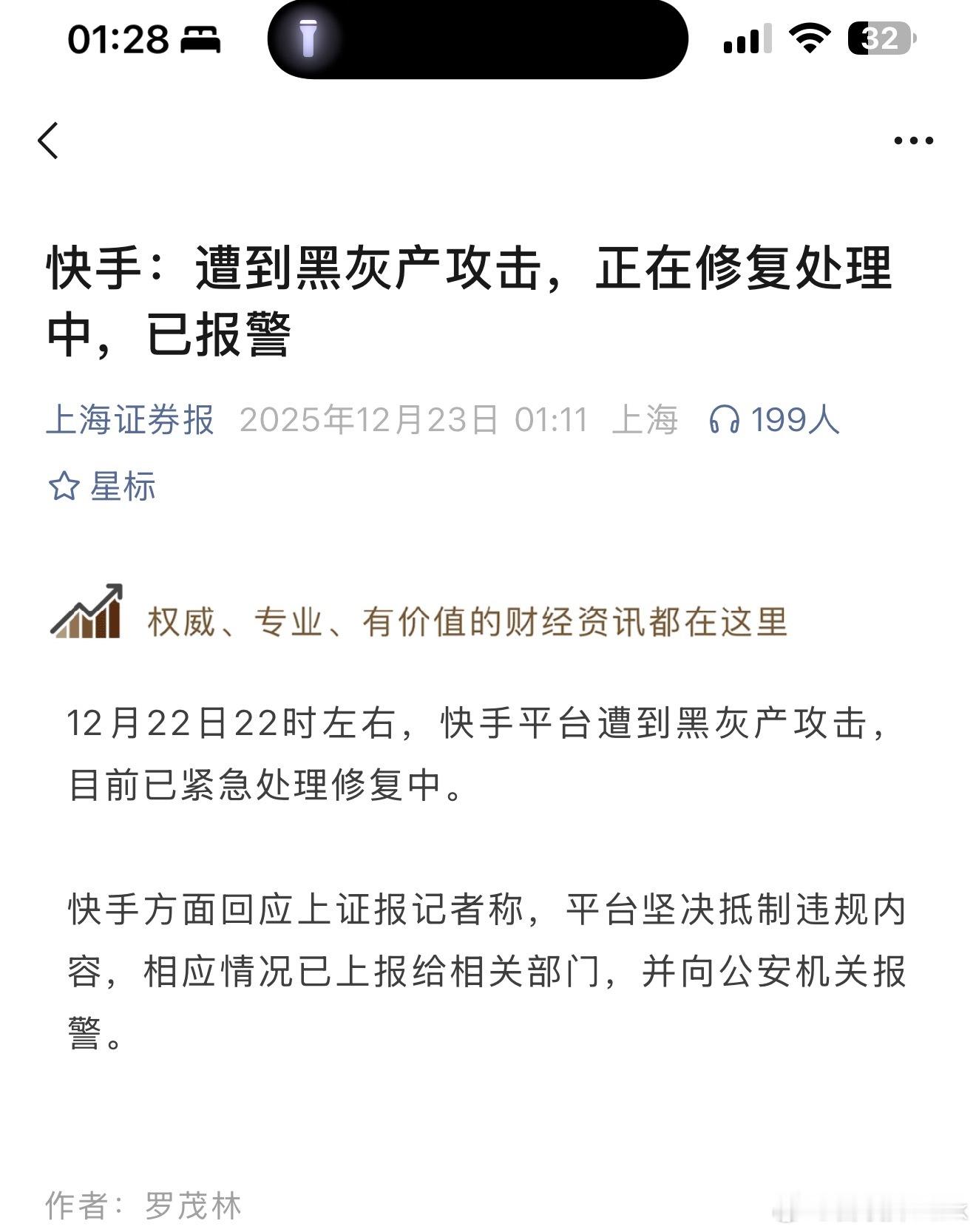 昨晚快手直播让人瞠目结舌,刚刚有媒体发了快手的回应:12月22日22时左右,快手平台遭到黑灰产攻击,目前已紧急处理修复中快手,平台坚决抵制违规内容,相应情况已上报给相关部门,并向公安机关报警。影响太恶劣了……