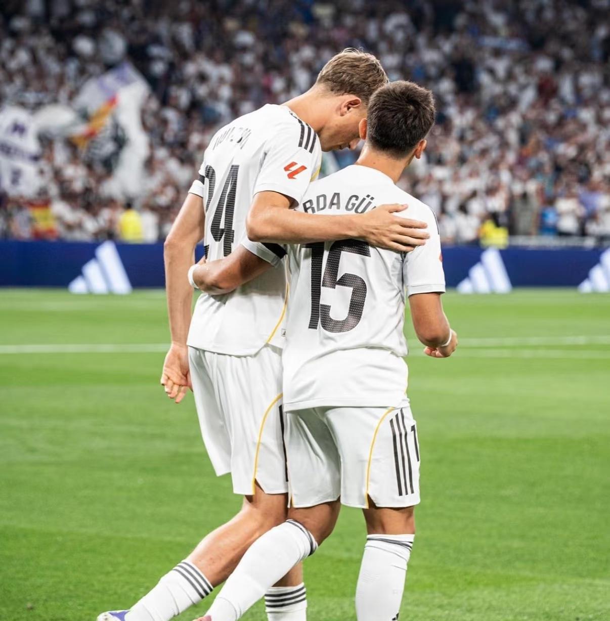 姆巴佩不防守,对抗差! 居勒尔无组织,对抗差! 赫伊森移动慢,对抗差! 库尔图瓦,十项全能,门将模板! 总之,皇马现在的中轴线对抗都差点意思,让球队在比赛中非常吃亏,还好门将位置有个库尔图瓦! 姆巴佩不防守可以理解,毕竟他能进球,能进很多球,要求他玩命防守时苛责,对比马竞的阿尔瓦雷斯可知道,前锋还是专注进攻吧! 居勒尔的转型基本是失败的,他目前还打不了组织核心,对手一上对抗,他基本就“吃灰”了,年轻人还是要磨练! 赫伊森的回追速度和对抗都不咋地,但出球是真好,这让球迷想起了佩佩和拉莫斯,可惜皇马目前没这样的靠谱中卫了! 上述四人充分体现的优势和短板:中场和防守差,赢球全靠姆巴佩和库尔图瓦!这样的皇马有点畸形,很难走得更有,和教练水平无关,需要升级阵容了! 大家怎么看?#姆巴佩#