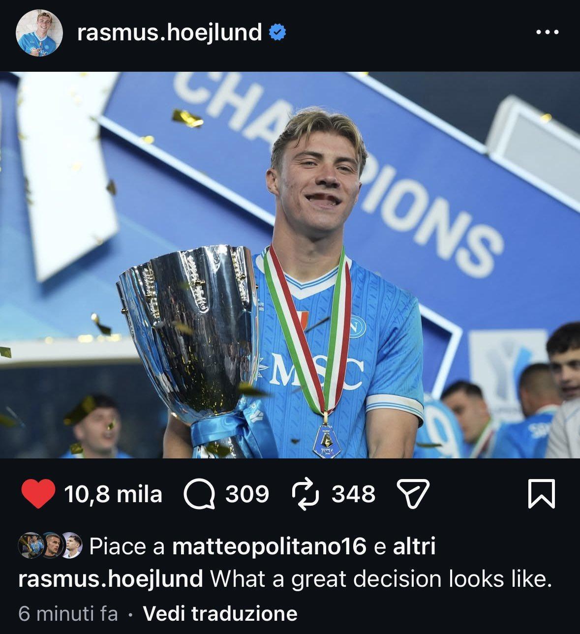 【霍伊伦暗讽曼联】周日晚间,那不勒斯在沙特利雅得的阿卜杜拉国王体育城2-0击败博洛尼亚,夺得意大利超级杯。 赛后,本赛季租借至那不勒斯、有望在赛季结束时被那不勒斯买断的霍伊伦在社媒上发文,疑似暗讽母队曼联。 他发布了一张自己手捧意大利超级杯的照片,并配文:“这就是做出正确决定的样子😉。”曼联