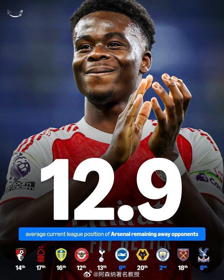 阿森纳本赛季剩下的客场比赛中,只需要对阵目前排名前十的球队中的三支,客战曼城应该是非常非常非常重要的一场比赛了 英超联赛 阿森纳著名教授