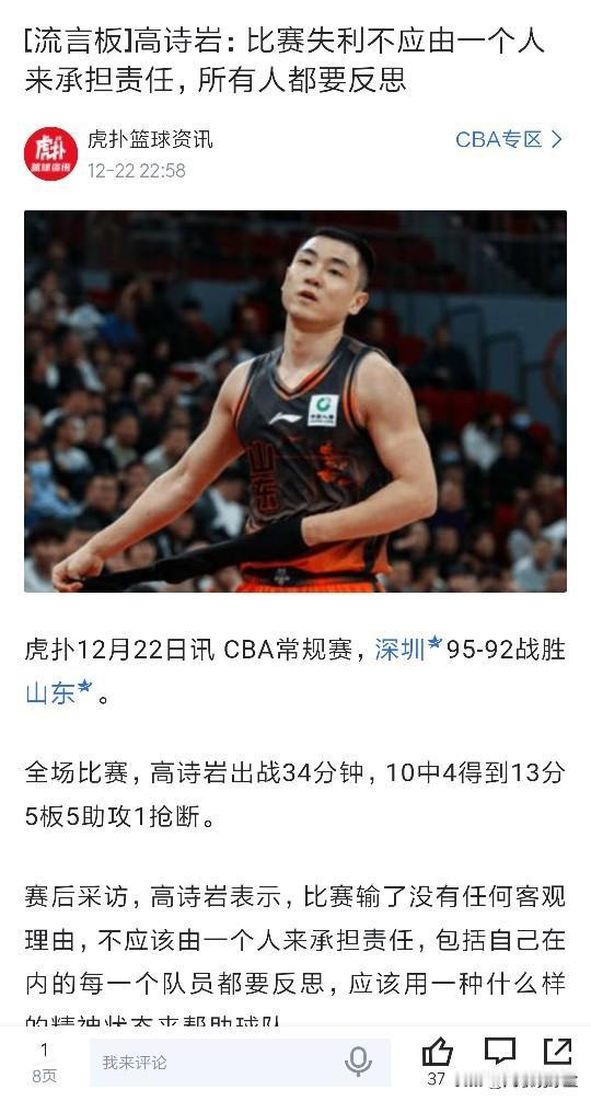离谱了!高诗岩发边线球误传队友错失三分绝平对手机会,最终92:95不敌深圳,赛后,高诗岩竟然推卸责任,大言不惭地说:这场比赛的失利不应该由他一个人来承担,所有人都要反思!甚至,山东输球后,高诗岩还在线怼山东球迷,对球迷的质疑表示无语,自己的做法并没有错!
