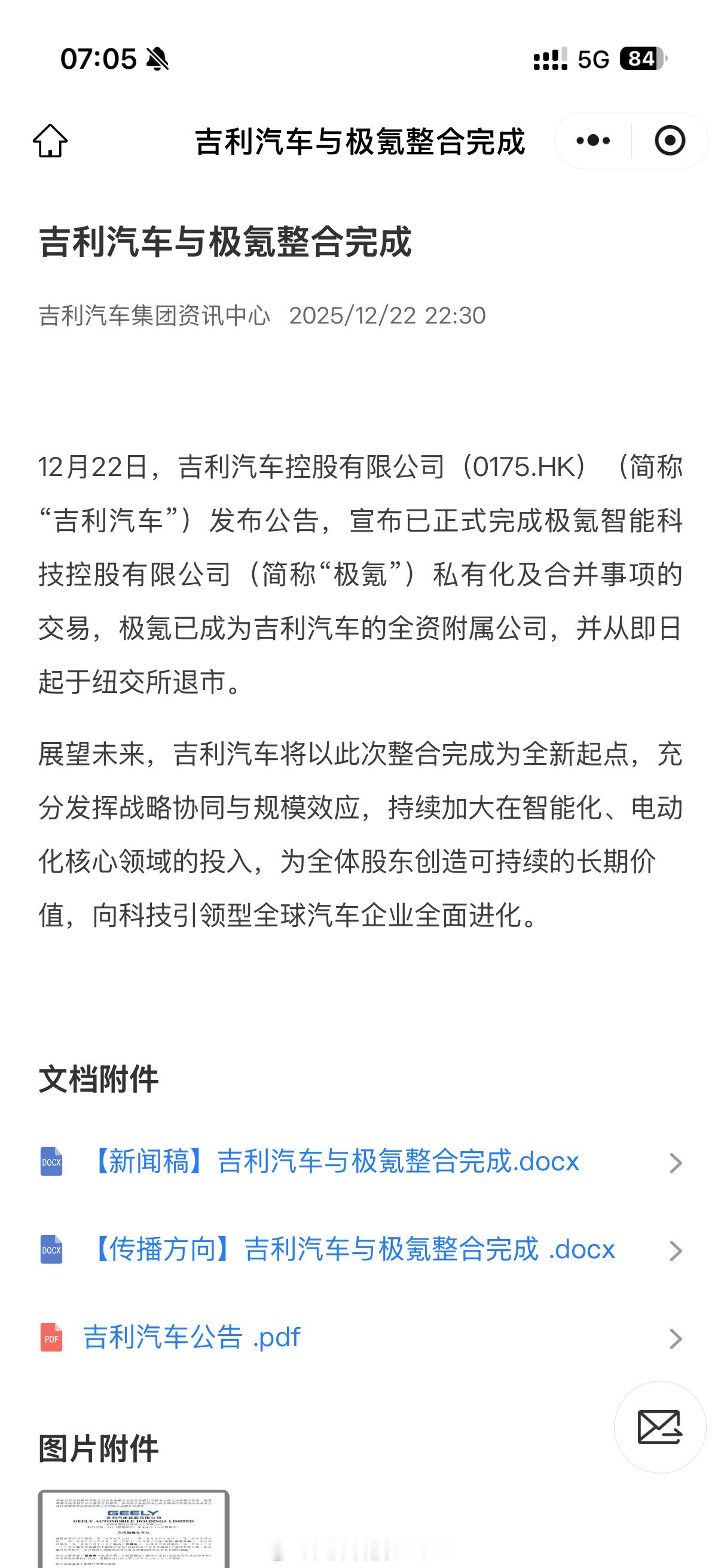 12月22日,吉利完成极氪私有化合并,极氪正式退市纽交所,成为吉利全资附属公司。这步棋很务实,一方面能减少海外上市的合规成本,另一方面也能让极氪更聚焦吉利集团的战略布局,不用再被短期股价波动牵扯精力。看好极氪后续在研发和渠道上的协同发力。吉利官宣完成极氪私有化,极氪从纽交所退市并成全资子公司。私有化不是退步,反而是给极氪松绑——脱离资本市场的短期考核,能更从容地投入长线技术研发,比如智能驾驶和三电系统。期待吉利系能整合资源,让极氪的产品力再上一个台阶。大v聊车智驾数码团