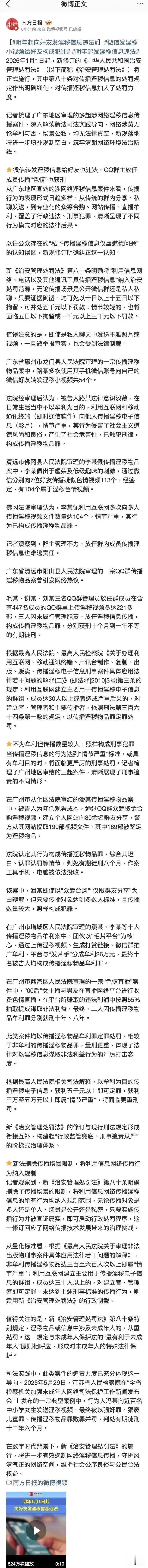 胡锡进:反对过度定义“传播淫秽信息”。特别赞同老胡这次的观点。任何事都要全面的考虑,不能搞“一刀切”。情侣,夫妻之间相互传点图片视频,搞点情调更利于双方关系的融洽。不对这个作出区分,如果两人发生矛盾了,一方拿这个说事去投诉另一方传播淫秽信息,那就乱套了。