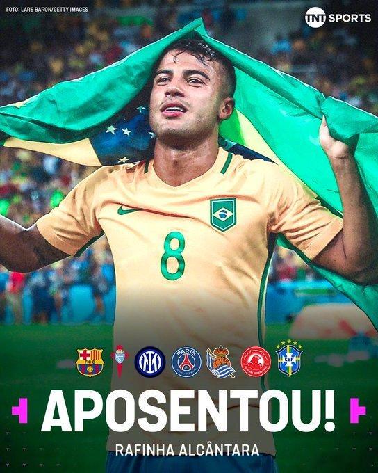 【挂靴退役】32岁的巴西中场拉菲尼亚宣布挂靴退役,他在一年前遭遇严重的膝伤,不得不告别职业赛场。拉菲尼亚与哥哥蒂亚戈都出自拉玛西亚青训,他在2011年升入巴萨一线队,随队在14-15赛季获得3冠王,2020年转会巴黎,2022年加盟卡塔尔的阿尔阿拉比,他还曾巴西国奥队获得里约奥运会男足金牌。